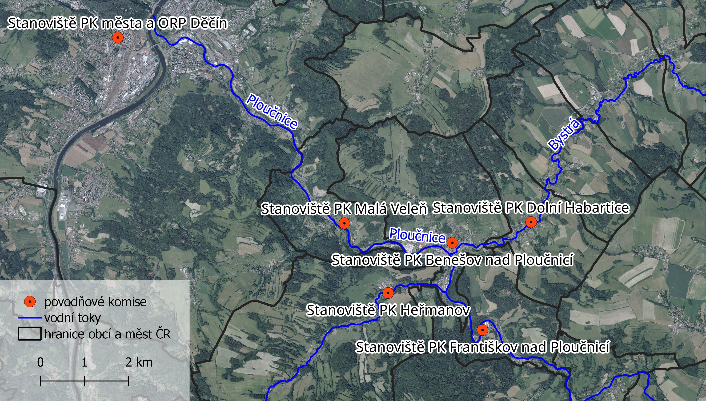 Povodňové komise, se kterými si město Benešov nad Ploučnicí vyměňuje informace o povodňové situaci
