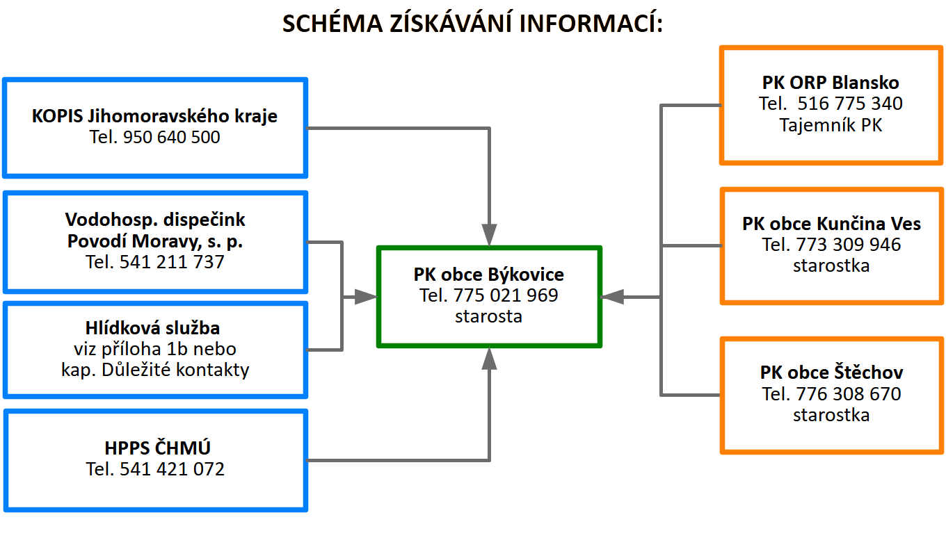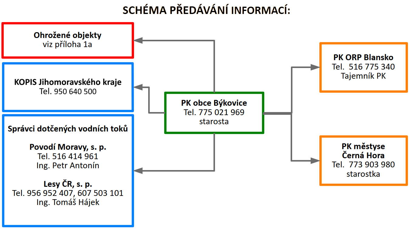 | 4 | Další vzestup hladin s nepříznivou prognózou | Svolání krizového štábu obce. | Předseda PK | KOPIS HZS Jihomoravského kraje |