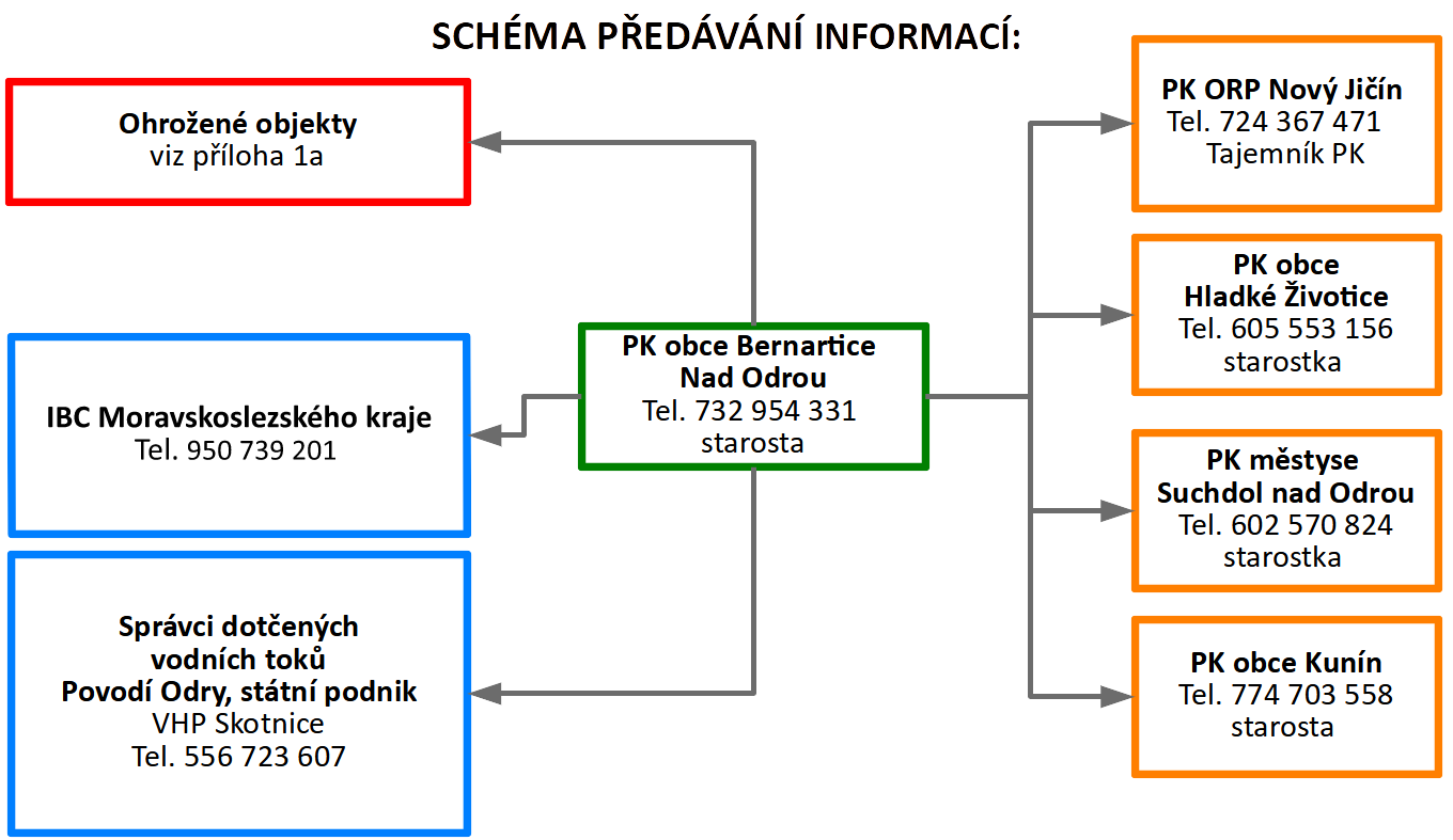 Zahájení činnosti povodňové komise obce Bernartice nad Odrou včetně důvodů se musí vždy zapsat (datum a čas) do povodňové knihy a vyrozumí se o tom: