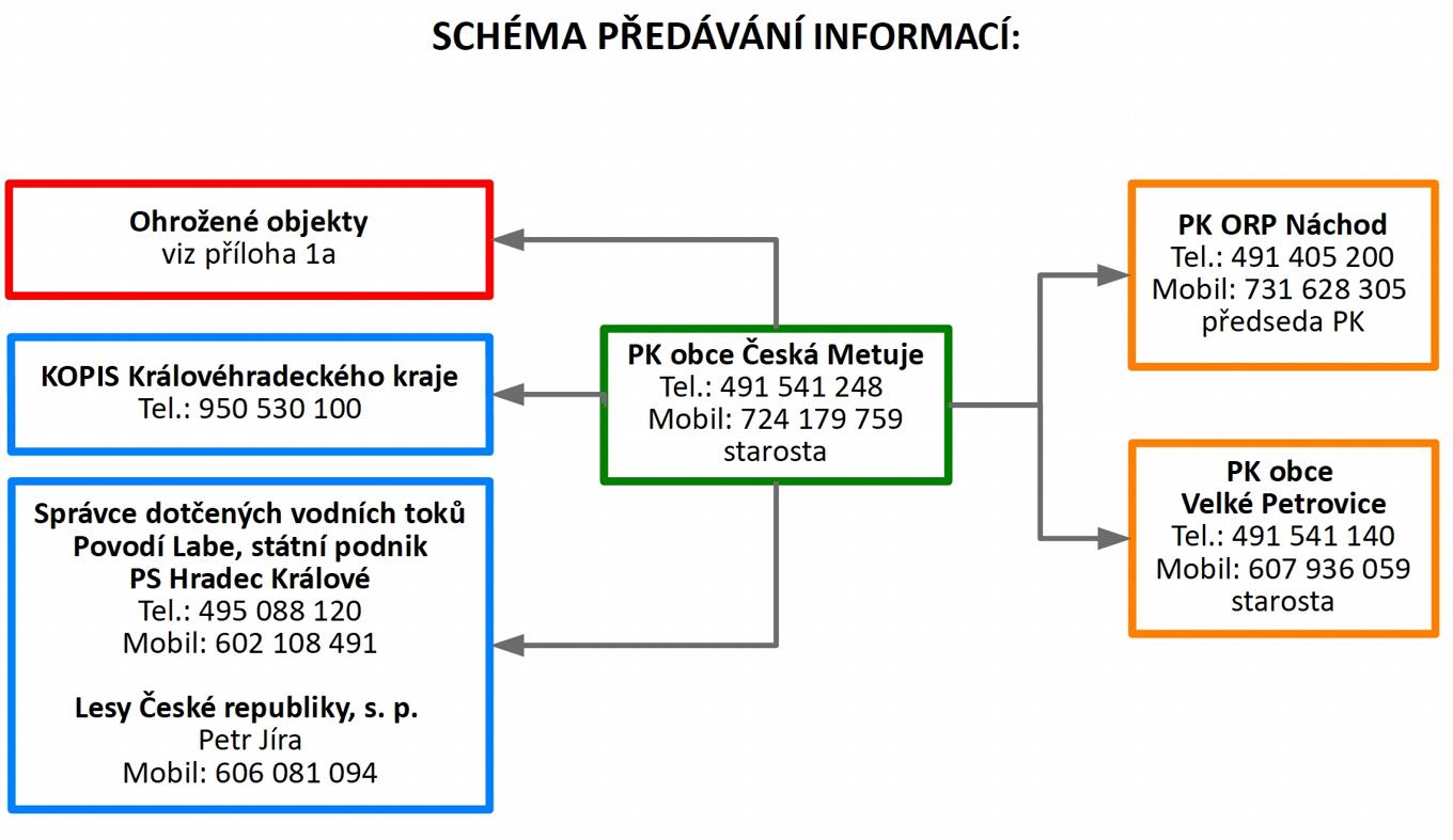 | 4 | Další vzestup hladin s nepříznivou prognózou | Svolání krizového štábu obce. | Předseda PK | KOPIS HZS Královéhradeckého kraje |