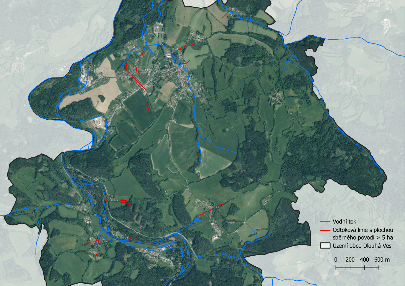 Odtokové linie s plochou sběrného povodí větší než 5 ha na území obce Dlouhá Ves