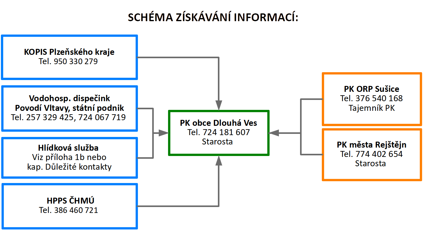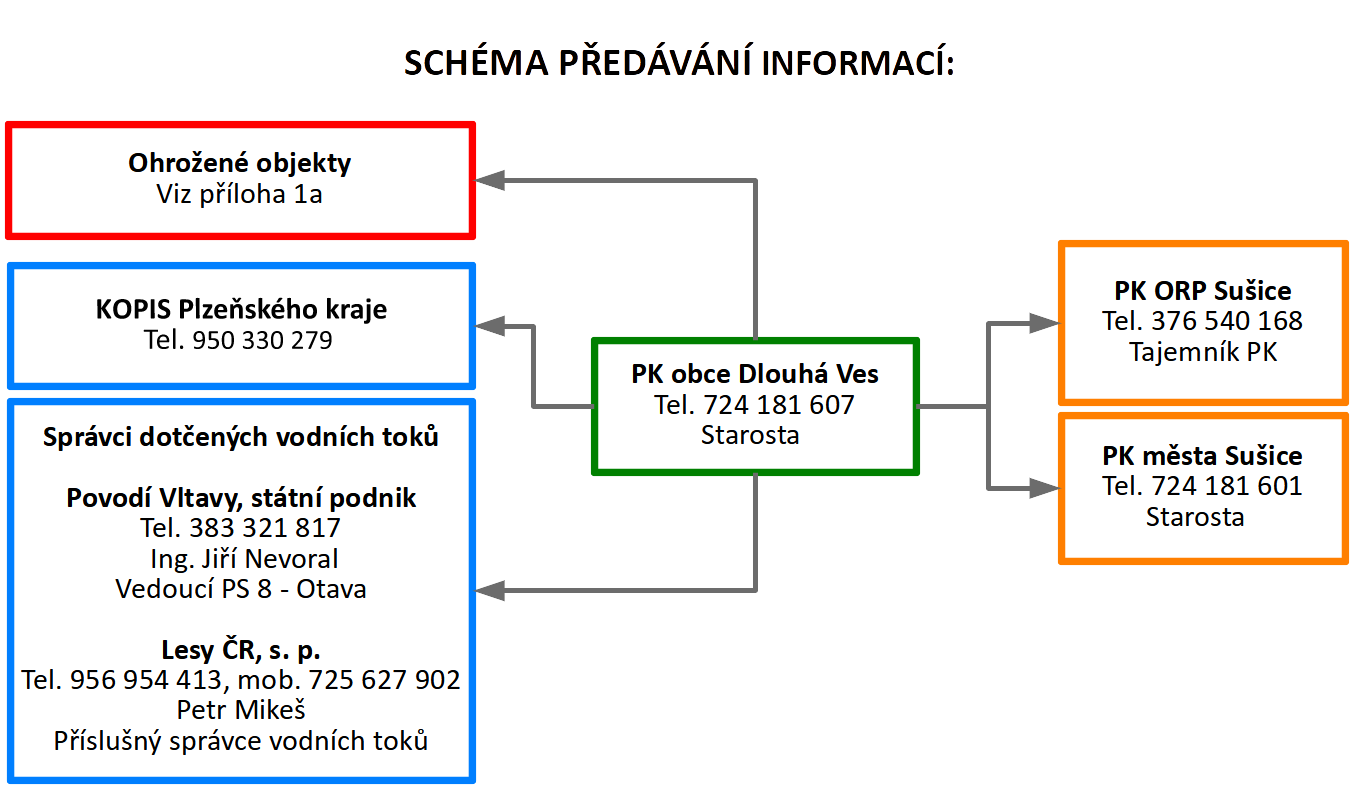 Zahájení činnosti povodňové komise obce Dlouhá Ves včetně důvodů se musí vždy zapsat (datum a čas) do povodňové knihy a vyrozumí se o tom: