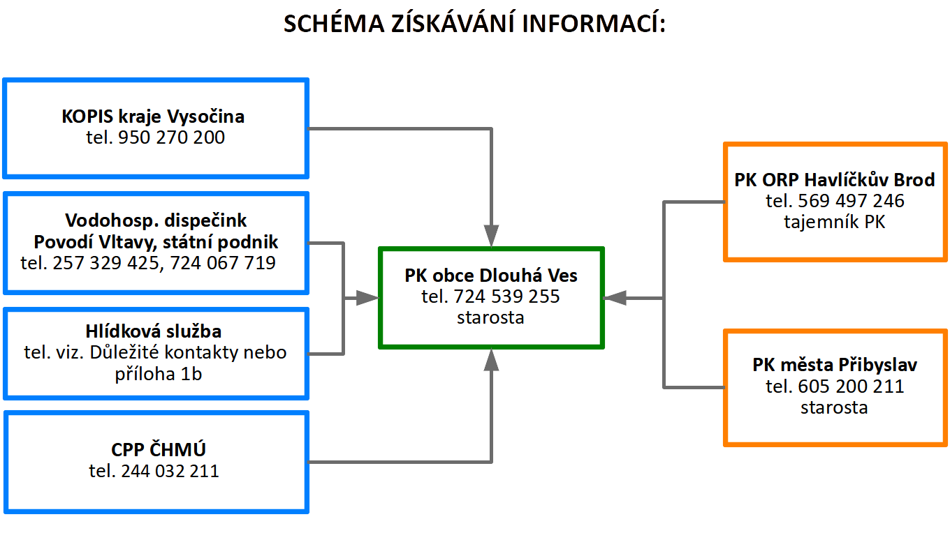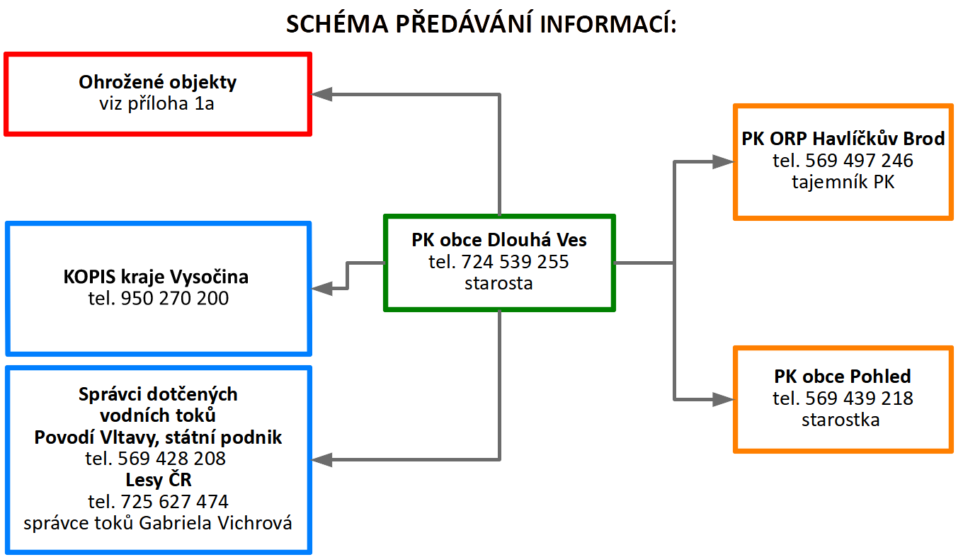 | 4 | Další vzestup hladin s nepříznivou prognózou | Svolání krizového štábu obce. | Předseda PK | KOPIS HZS kraje Vysočina |