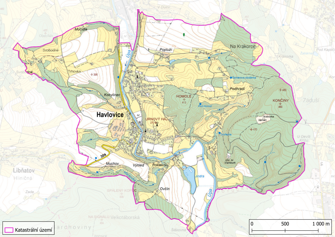 Využití pozemků v obci Havlovice (dle ČSÚ k 31. 12. 2024)