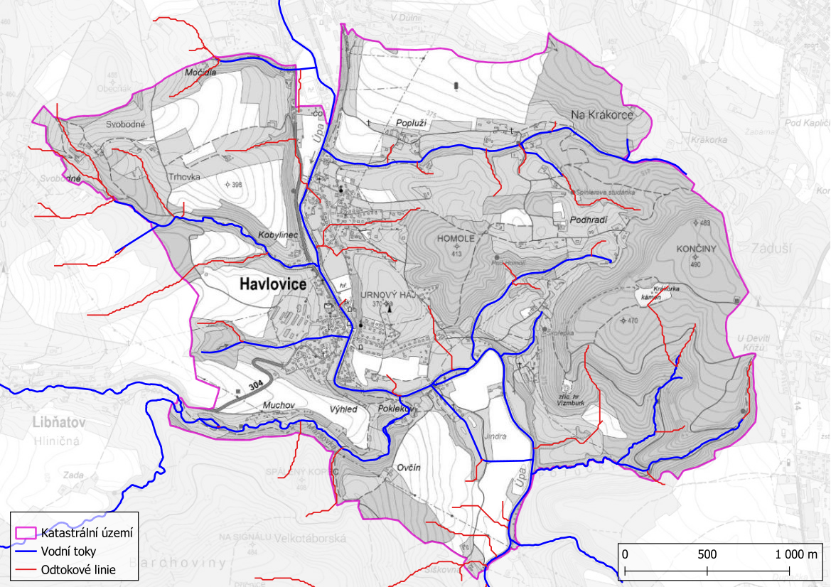Odtokové linie s plochou sběrného povodí > 5 ha na území obce Havlovice
