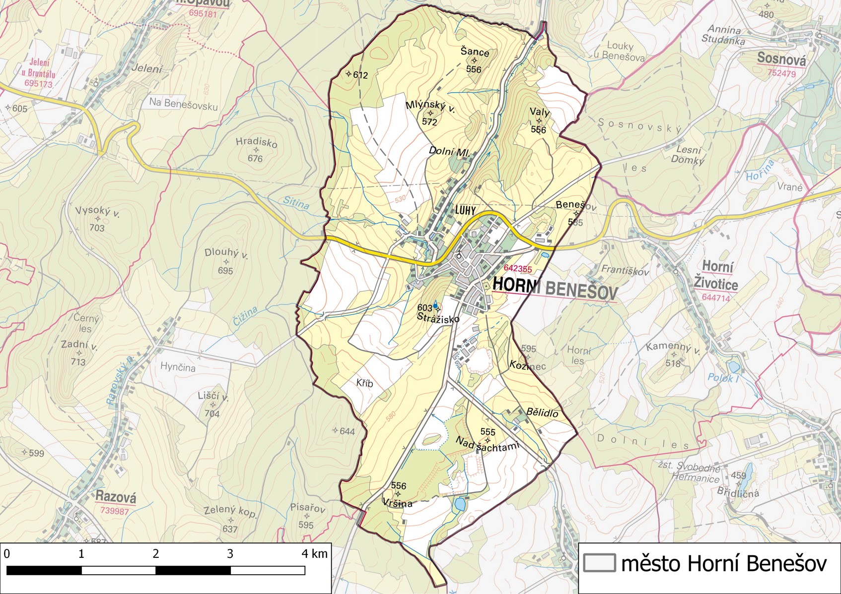 Využití pozemků ve městě Horní Benešov (dle ČSÚ k 31. 12. 2024)
