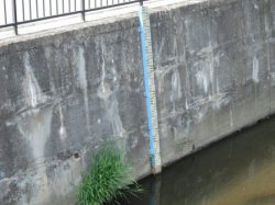 Hladinoměr se nachází na mostní konstrukci (pravá strana) vedoucí k podniku API Novo Machinery. Profil není vybaven automatickým přenosem dat, jedná se pouze o barevné vyznačení jednotlivých SPA (zelená odpovídá 1. SPA, oranžová 2. SPA a červená 3. SPA). Nula vodočtu je umístěna na obrubě mostovky. Profil monitoruje hlídková služba města.