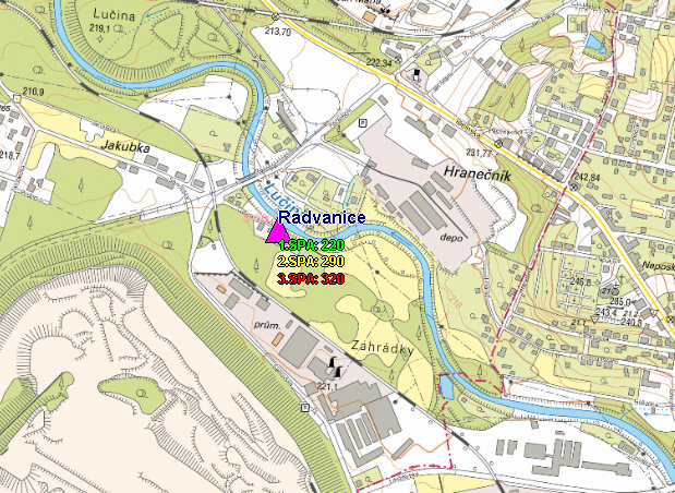 Hlásný profil kat. B se nachází v městském obvodu Radvanice naproti autobusových garáží Hranečník na levém břehu (ulice Lučinská). Profil je osazen hladinovým a průtokoměrným čidlem s automatickým přenosem naměřených dat.