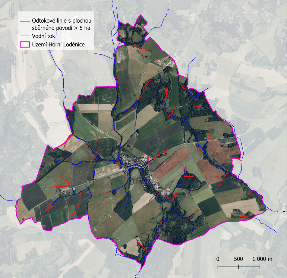 Odtokové linie s plochou sběrného povodí > 5 ha na území obce Horní Loděnice