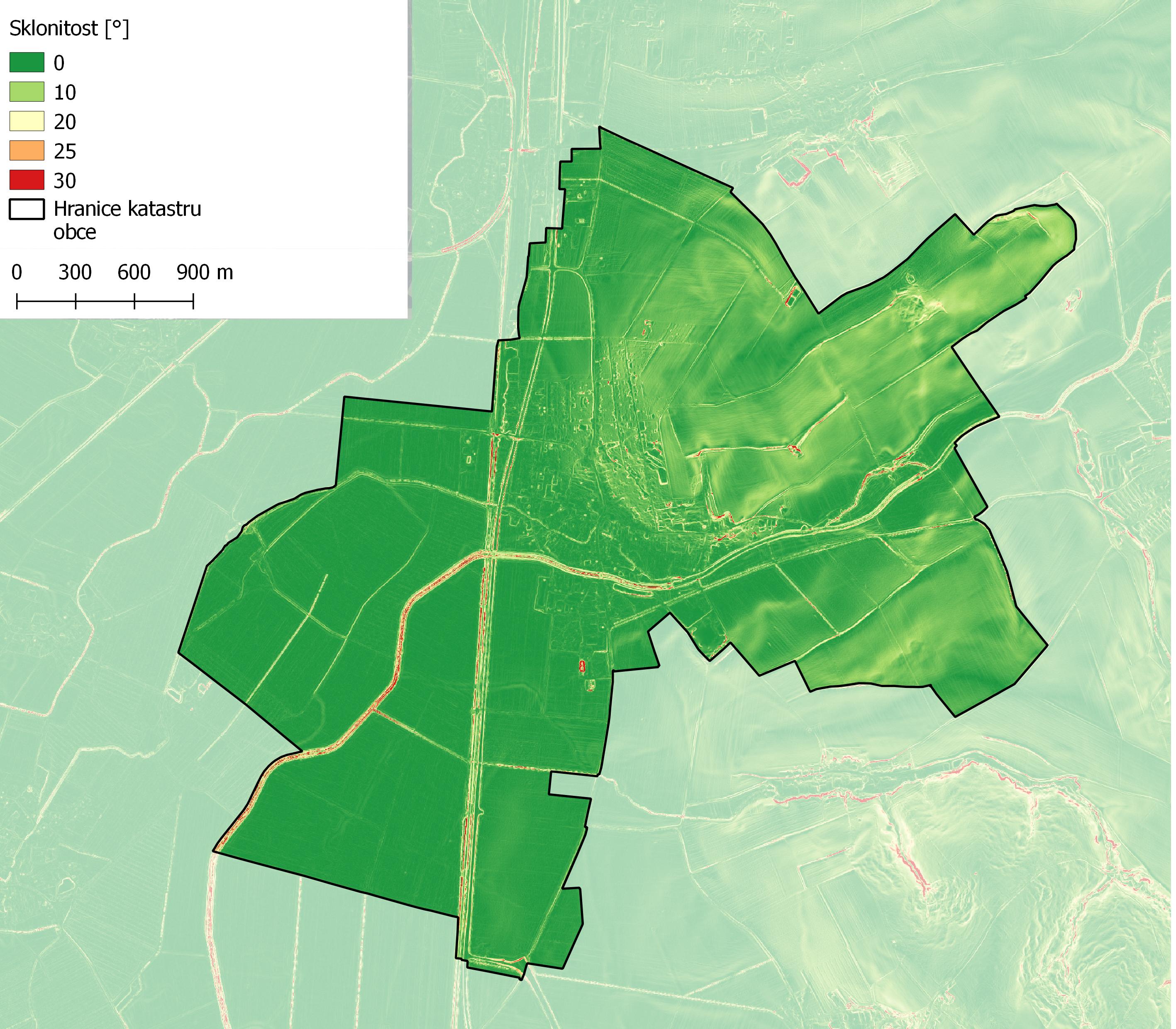 Velikost katastru činí 981,9 ha. Níže uvedená tabulka popisuje procentuální podíly jednotlivých druhů využití pozemků, které se v území obce vyskytují. Dle tabulky je zjevné, že majoritní zastoupení má v zájmovém území využití půdního fondu jako orná půda (78,5 %), 10,6 % tvoří ostatní plochy, 4,7 % zahrady, 2,7 % zastavěné plochy, 1,7 % trvalé travní porosty, 1,3 % vodní plochy, 0,4 % lesní půda, a 0,1 % sady.