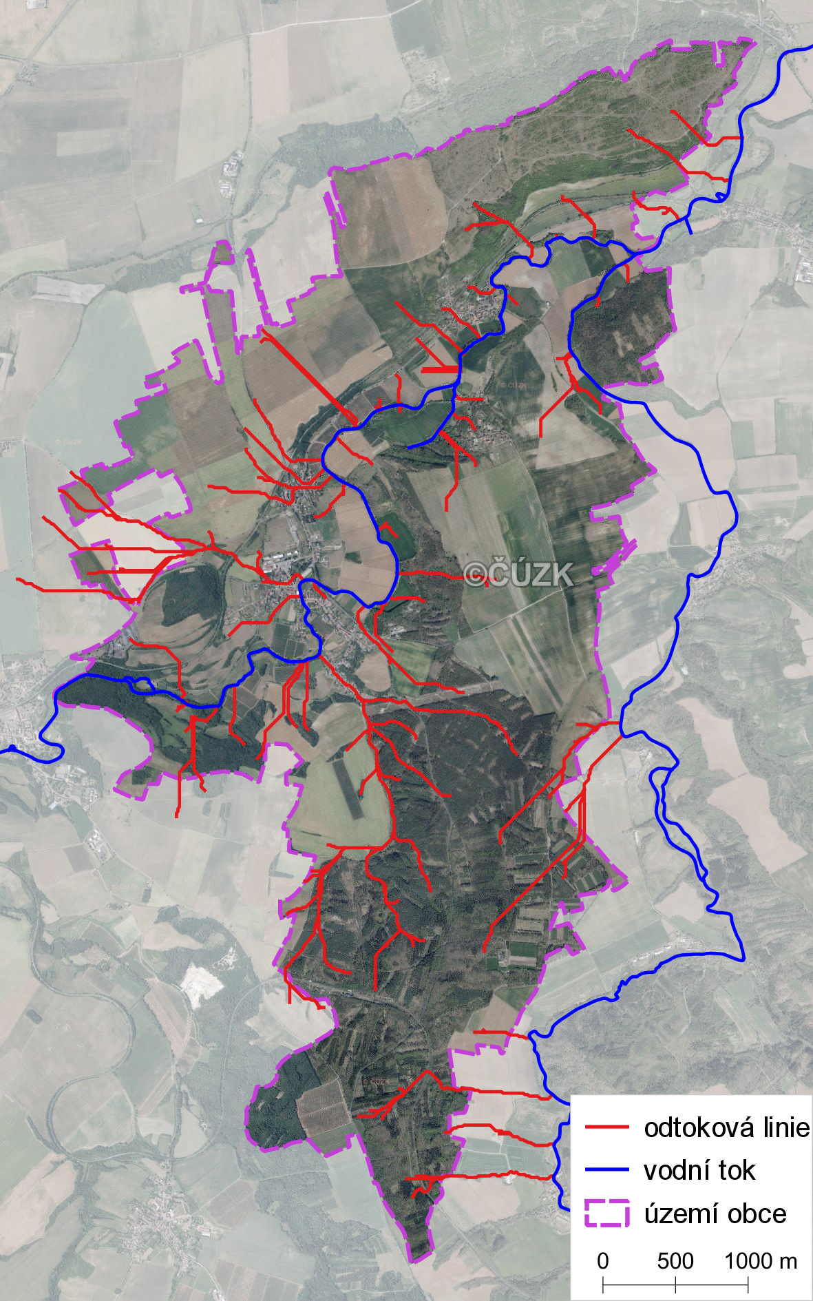 Identifikace odtokových linií s přispívající plochou povodí > 5 ha
