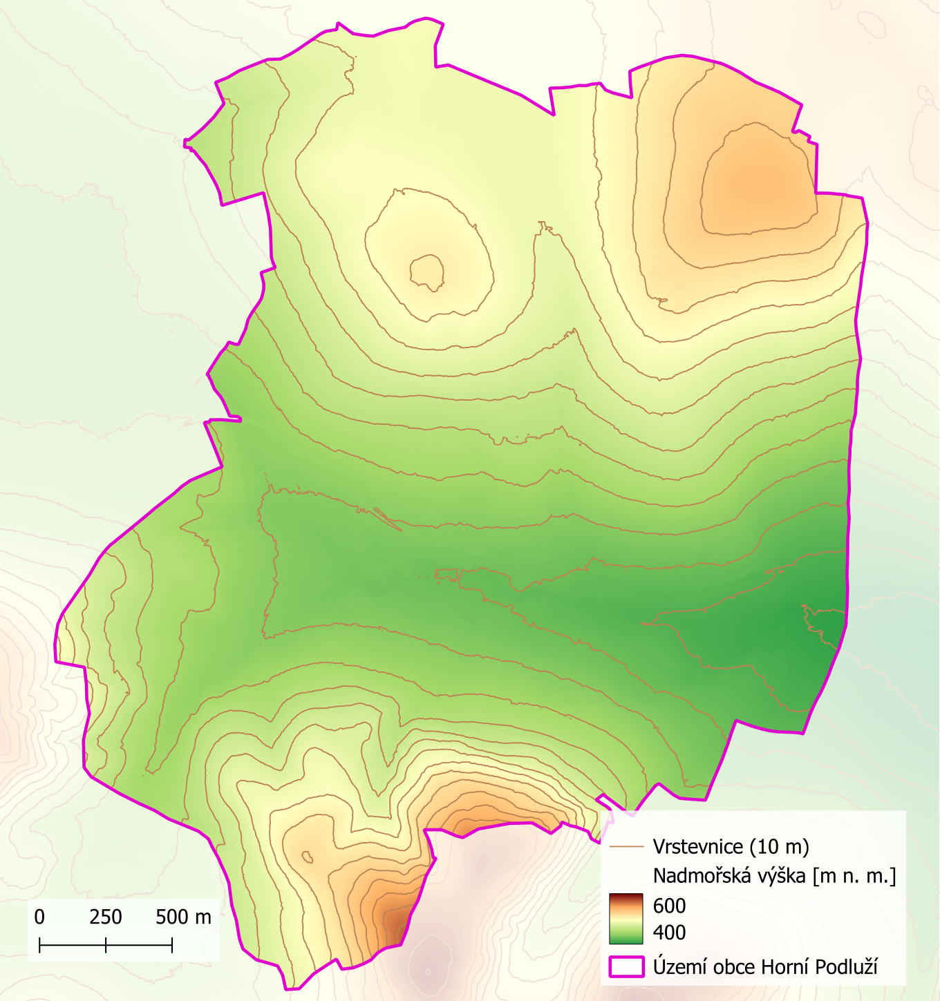 Digitální model reliéfu na území obce Horní Podluží