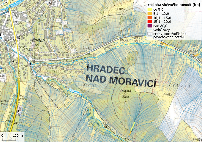 Místa ohrožená přívalovou povodní na území města Hradec nad Moravicí