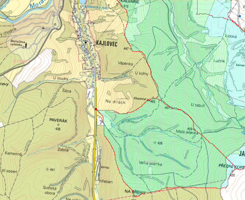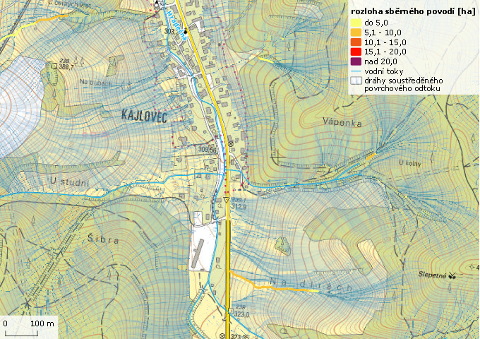 Dráhy soustředěného povrchového odtoku v oblasti horní části Kajlovce