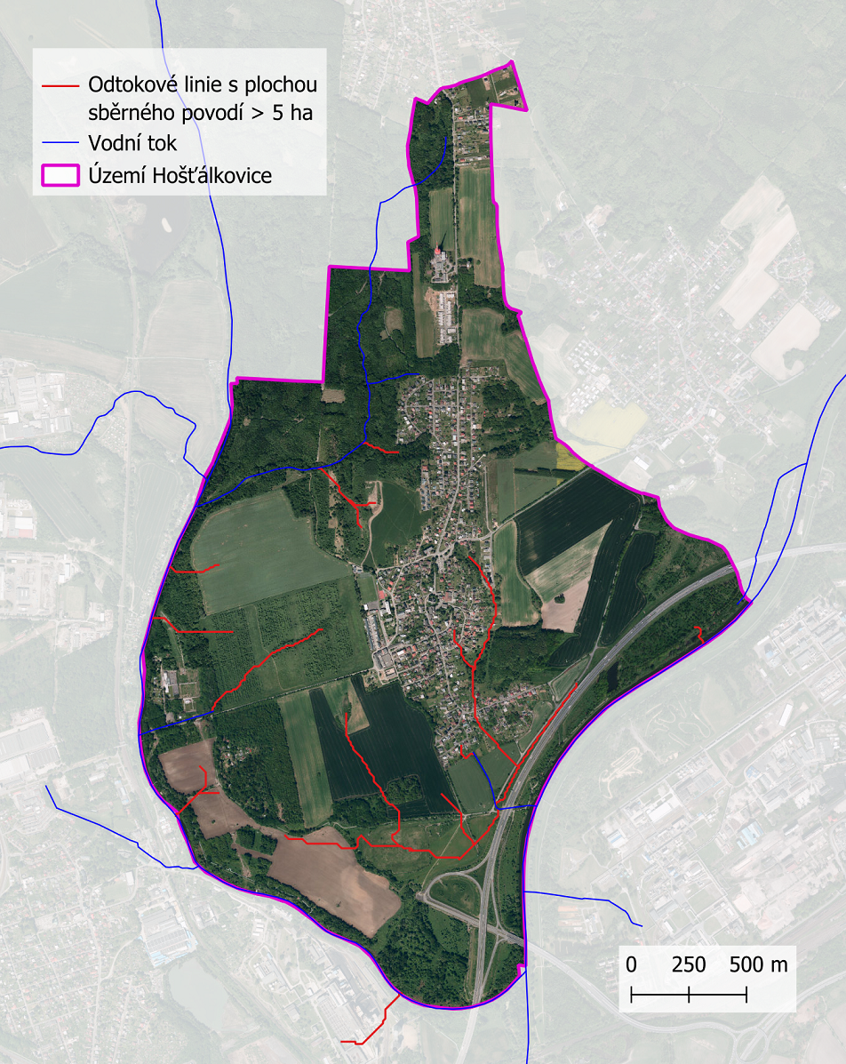 Odtokové linie s plochou sběrného povodí > 5 ha na území městského obvodu Hošťálkovice