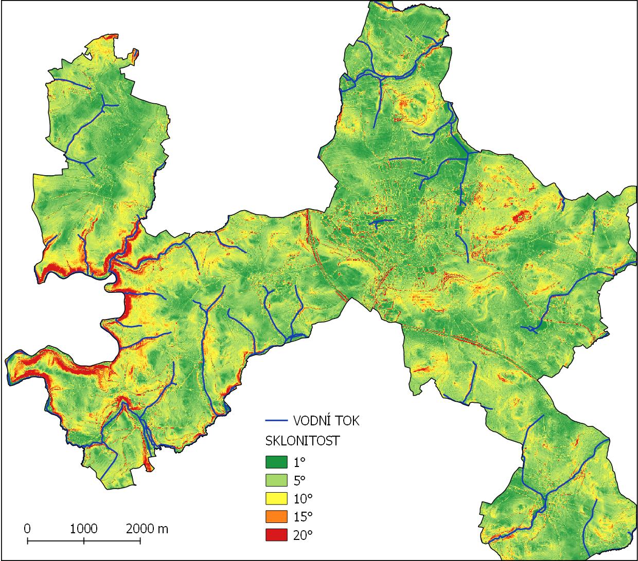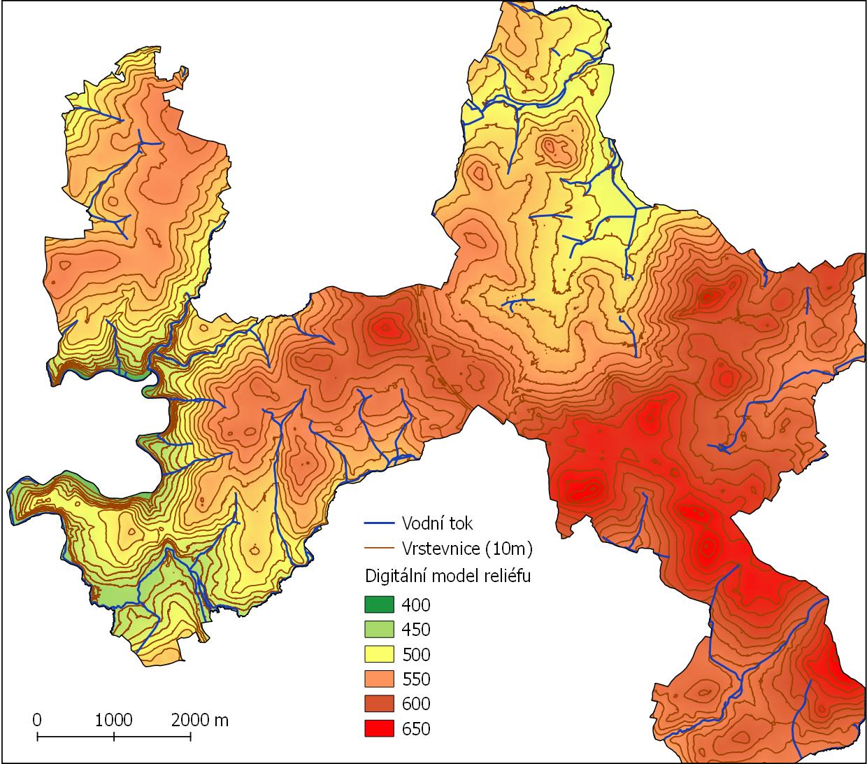 Digitální model reliéfu města Humpolec se znázorněním vodních toků