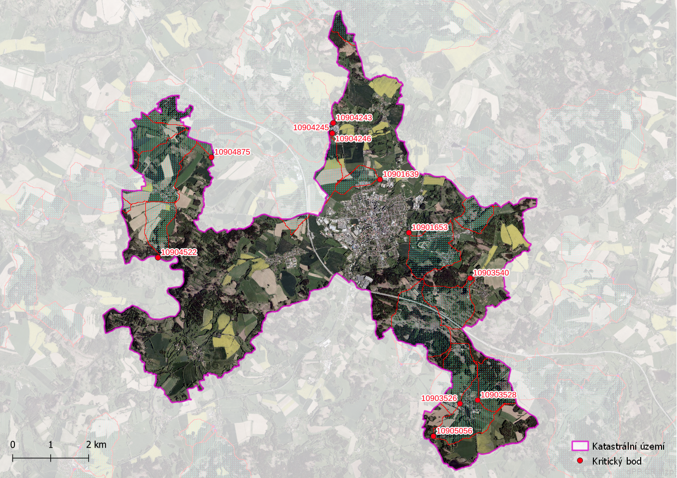 Metodou tzv. kritických bodů byla Výzkumným ústavem vodohospodářským, v. v. i. provedena analýza a vyznačeno území, které může být příčinou lokální přívalové povodně při intenzivních deštích. Kritické body byly stanoveny na základě digitálního modelu terénu s rozlišením buňky 10 x 10 m. K zařazení dráhy soustředěného povrchového odtoku do kritického bodu byly zohledněny tři parametry: velikost přispívající plochy (0,3 - 10,0 km2), průměrný sklon přispívající plochy (>= 3,5 %) a podíl plochy orné půdy v povodí (>= 40 %). V případě, že byl podíl orné půdy menší než 40 %, případně byla plocha zcela zalesněna, byly zohledněny pouze dva parametry a to velikost přispívající plochy (1,0 - 10,0 km2) a průměrný sklon přispívající plochy (>= 5,0 %). Tyto body byly stanoveny pro celé území ČR v měřítku 1: 500 000.