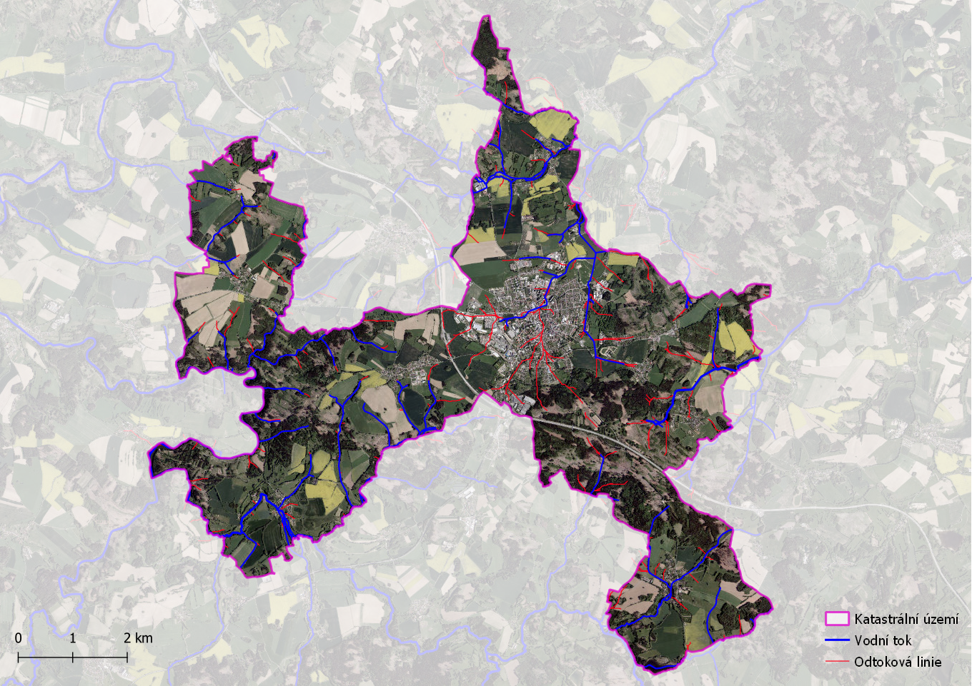 Jednotlivé výstupy znázorňují lokality, v nichž se nachází kritické body přívalové povodně a jinak historicky problematická místa. Tyto výstupy byly vytvořeny z modelu drah soustředěného odtoku - vytvořeného na datech Digitálního modelu reliéfu 5. generace za pomocí Flow accumulation model v prostředí GRASS GIS. Lze z nich identifikovat potenciální lokality vzniku přívalových povodní. Model však nezohledňuje vsak vod do podloží a případná podzemní odvodňovací zařízení (kanalizace, meliorace, apod.), které nedokáže laserové skenování zachytit.