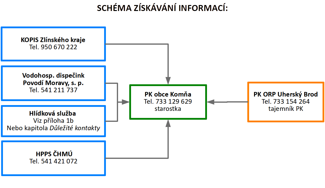 | 4 | Další vzestup hladin s nepříznivou prognózou | Svolání krizového štábu obce. | Předseda PK | KOPIS HZS Zlínského kraje |