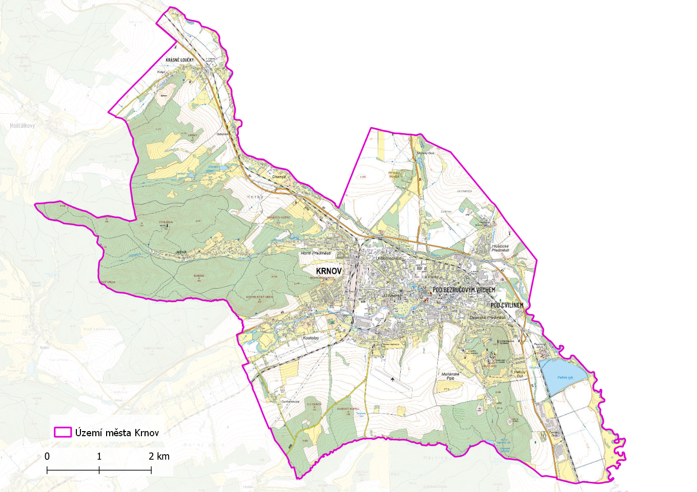 Využití pozemků ve městě Krnov (dle ČSÚ k 31. 12. 2024)