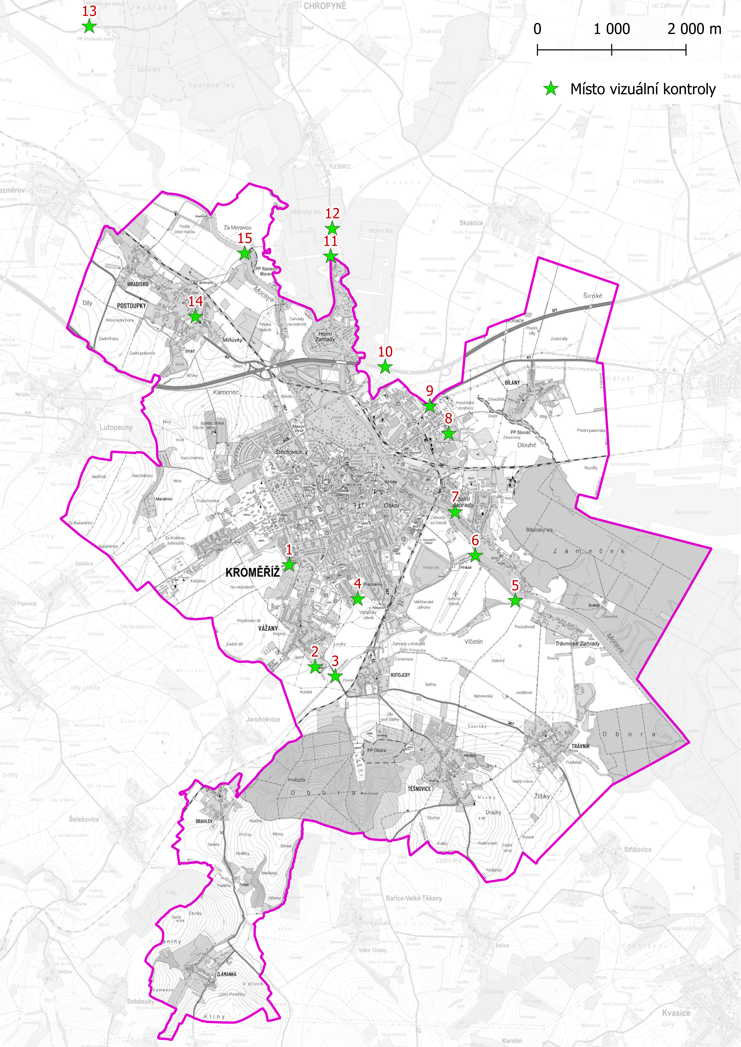 Místa vizuální kontroly pro hlídkovou službu města Kroměříž
