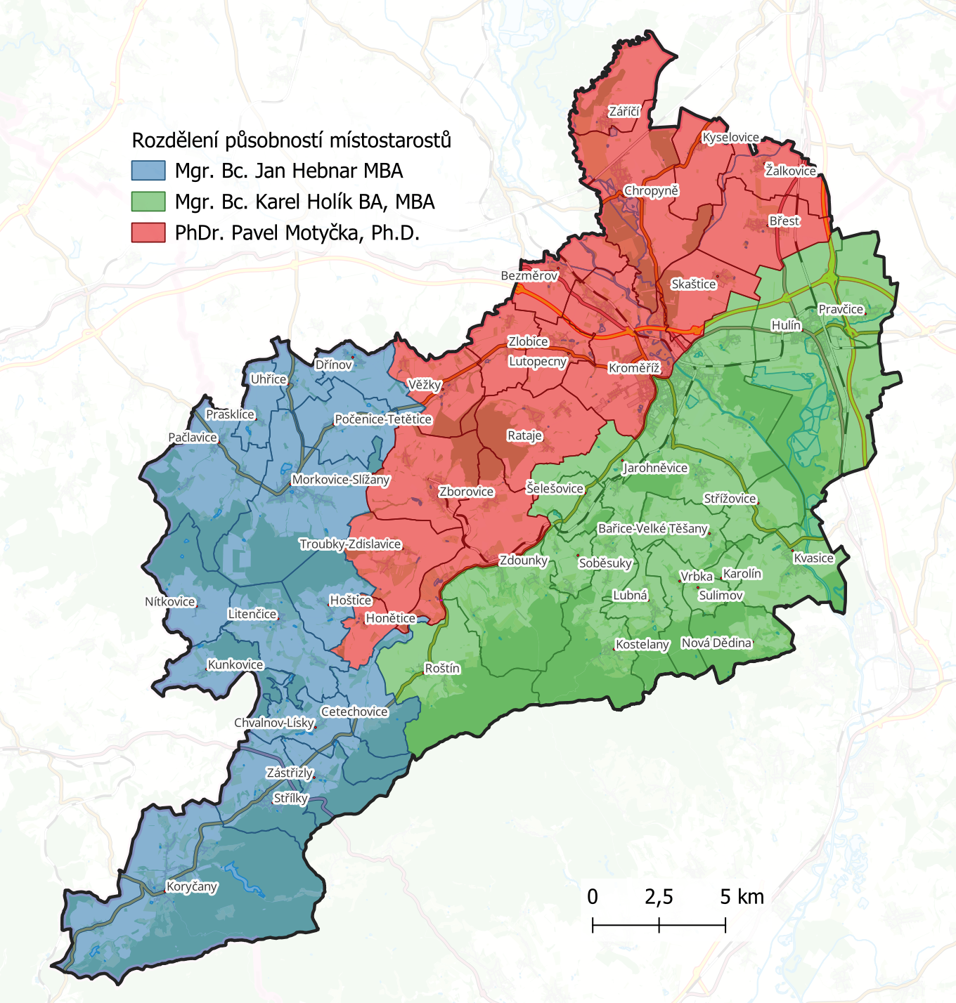 Rozdělení působnosti místostarostů z hlediska komunikace se starosty obcí ORP Kroměříž
