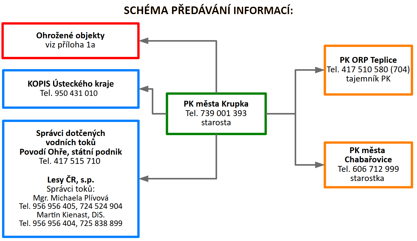 2) Povodňový orgán města Krupka, PK SO ORP Teplice a PK Ústeckého kraje