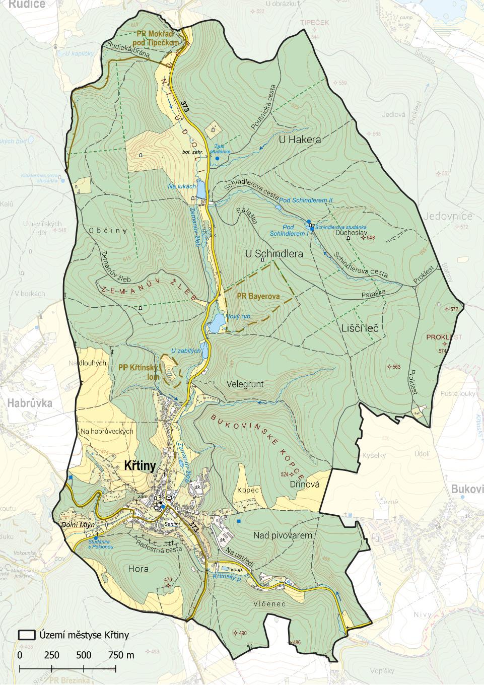 Území městyse Křtiny