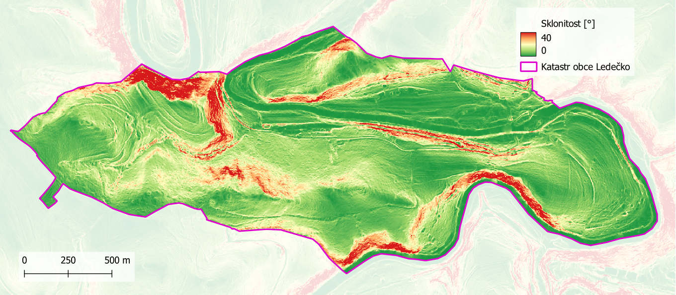 Využití pozemků v obci Ledečko (dle ČSÚ k 31. 12. 2024)