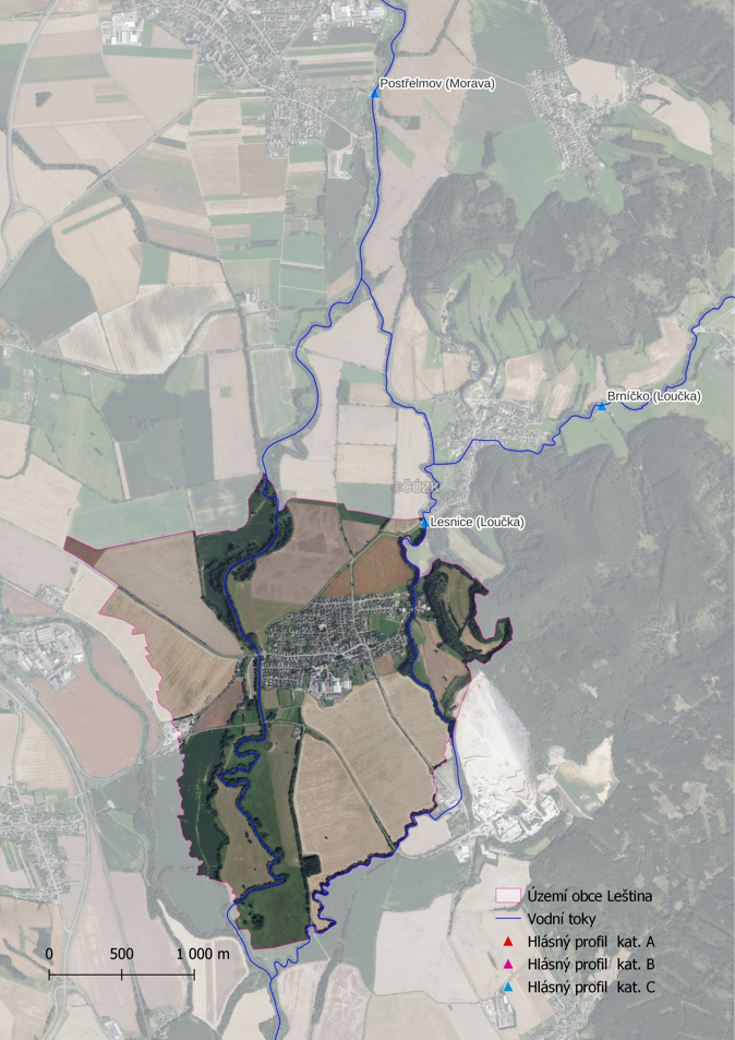 Rozmístění relevantních hlásných profilů pro obec Leština