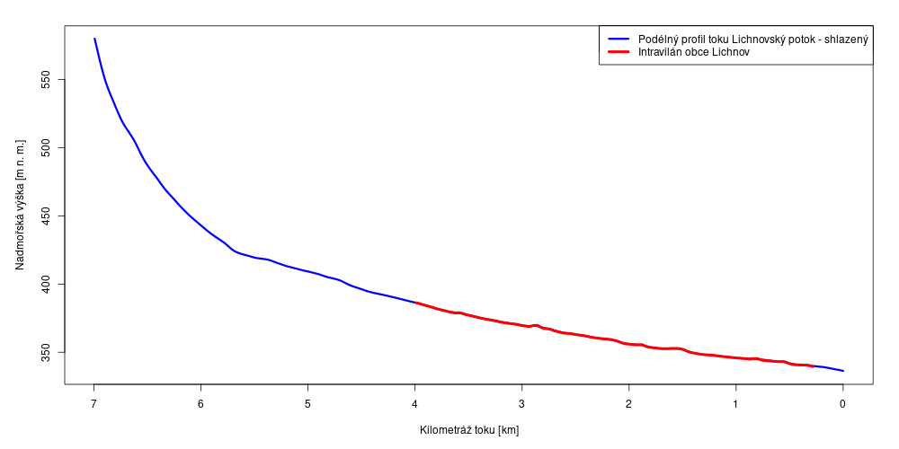 Podélný sklon vodního toku Lichnovský potok