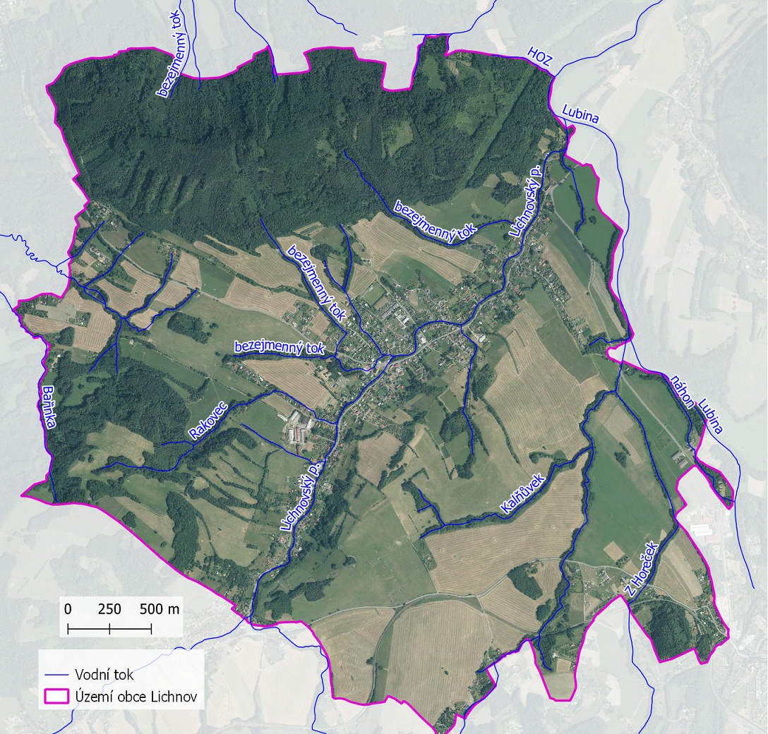 Základní údaje o vodních tocích na území obce Lichnov