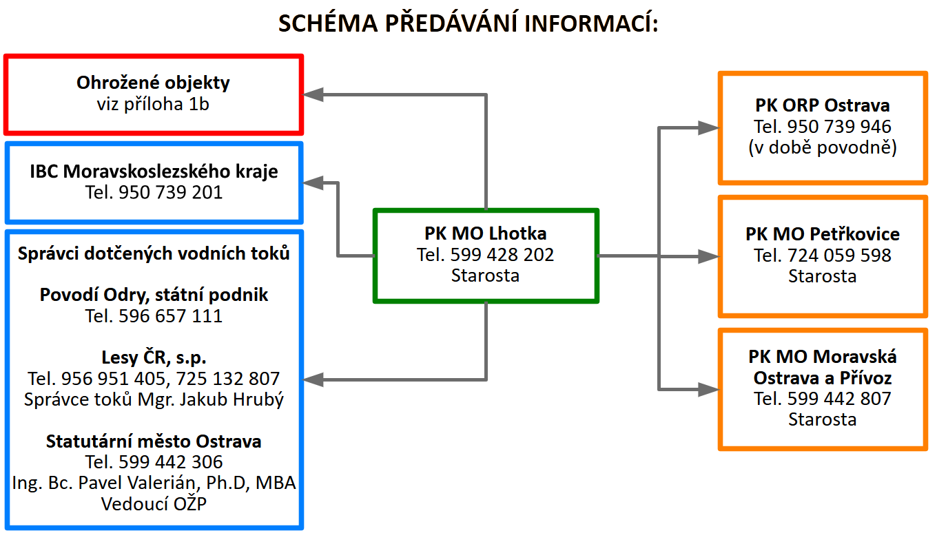 - povodňové orgány městských obvodů Petřkovice a Moravská Ostrava a Přívoz, které leží na vodních tocích pod městským obvodem