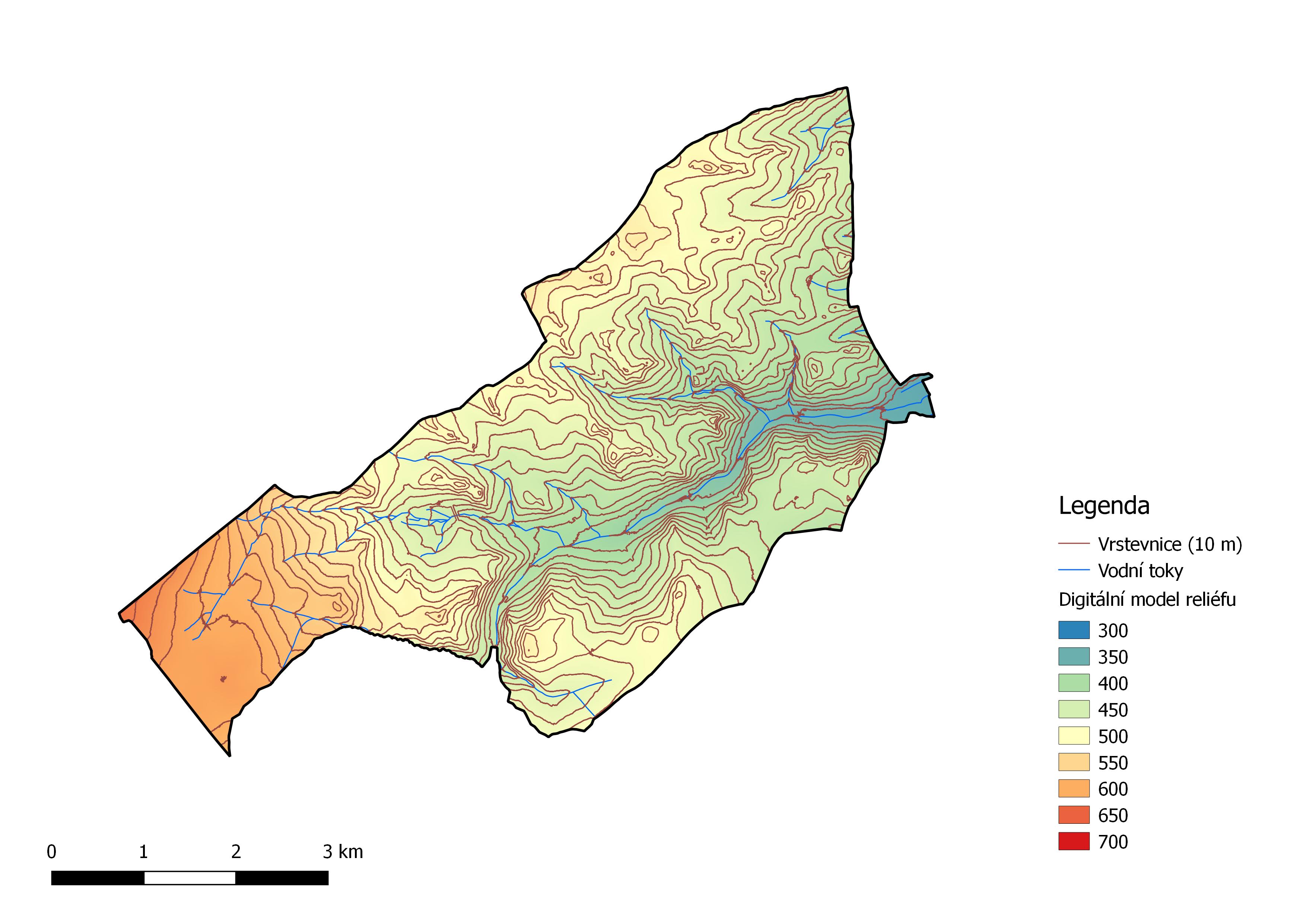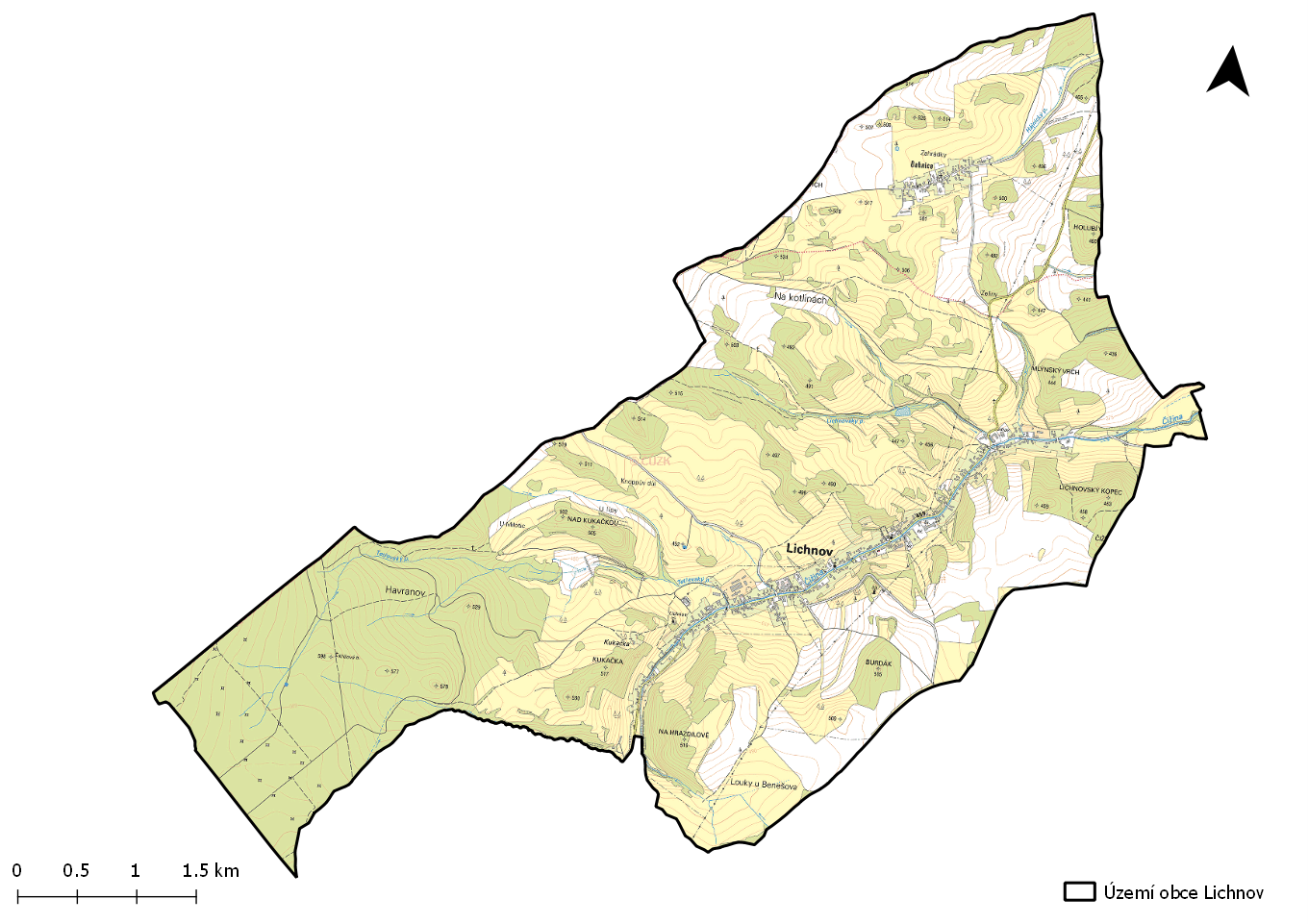 Digitální model reliéfu obce Lichnov (uvedené údaje jsou udávány v m n. m.)