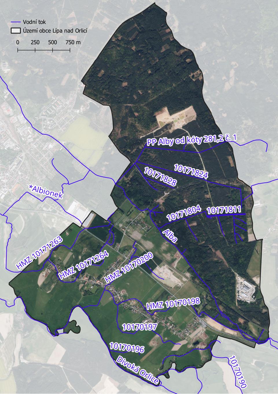 Základní údaje o vodních tocích na území obce Lípa nad Orlicí