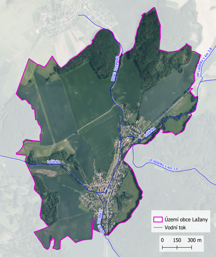 Základní údaje o vodních tocích na území obce Lažany