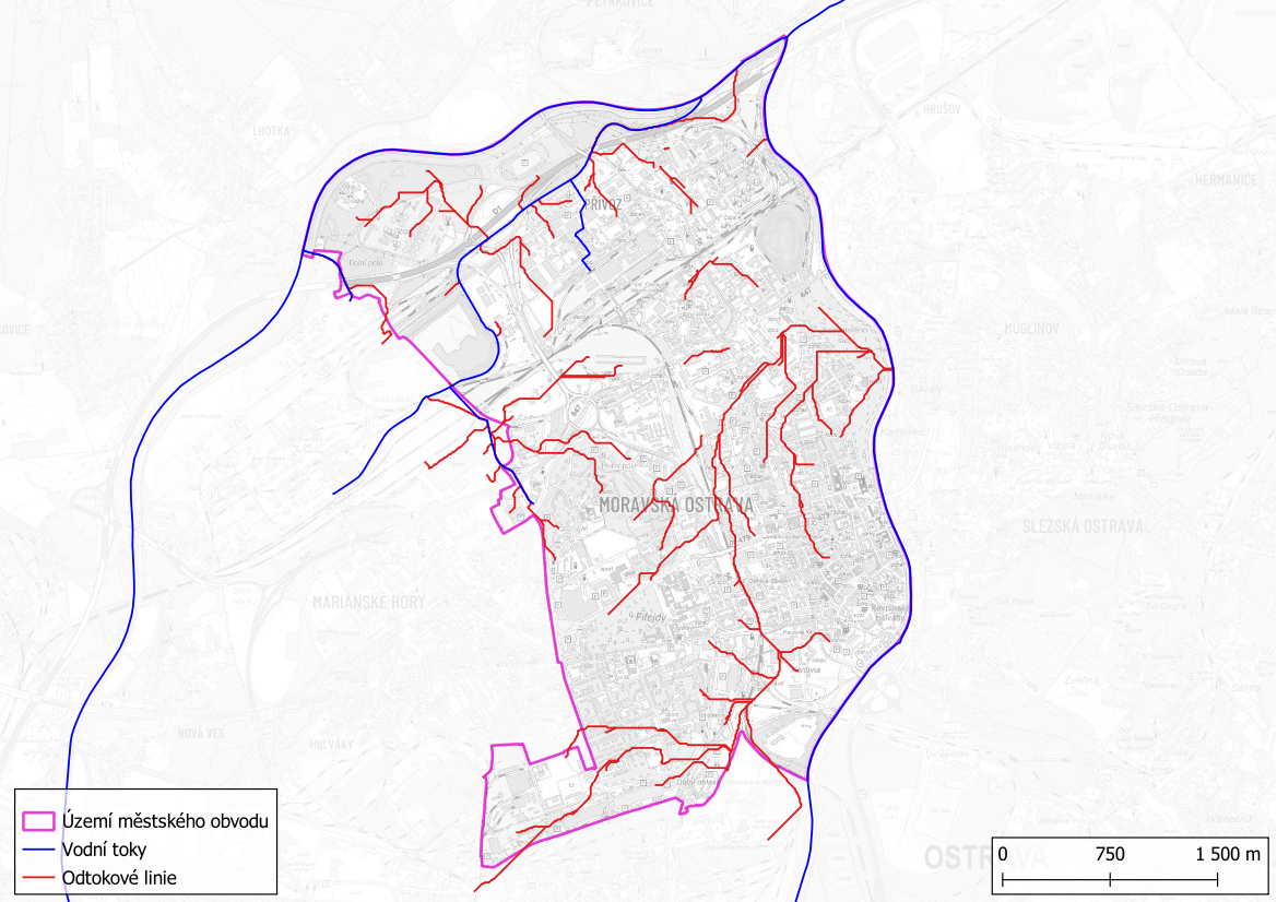 Odtokové linie s plochou sběrného povodí > 5 ha na území městského obvodu Moravská Ostrava a Přívoz