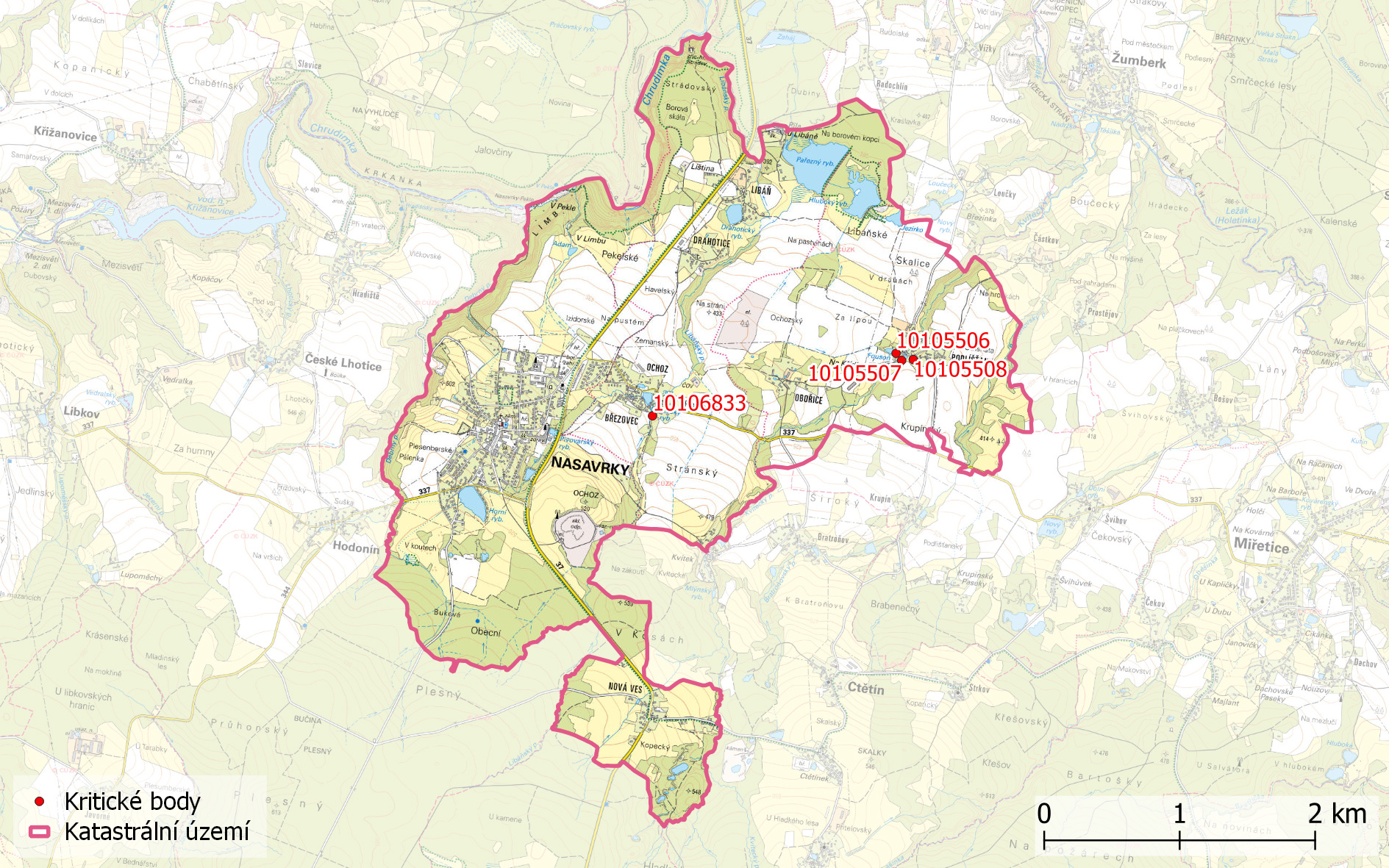 Na území obce Vranovice byly stanoveny čtyři kritické body: