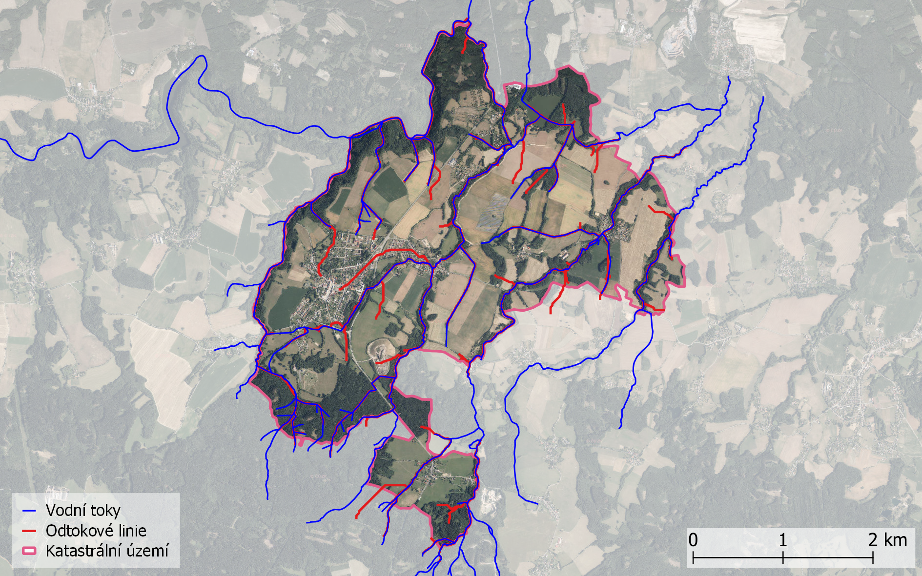 Identifikace odtokových linií s přispívající plochou povodí > 5 ha