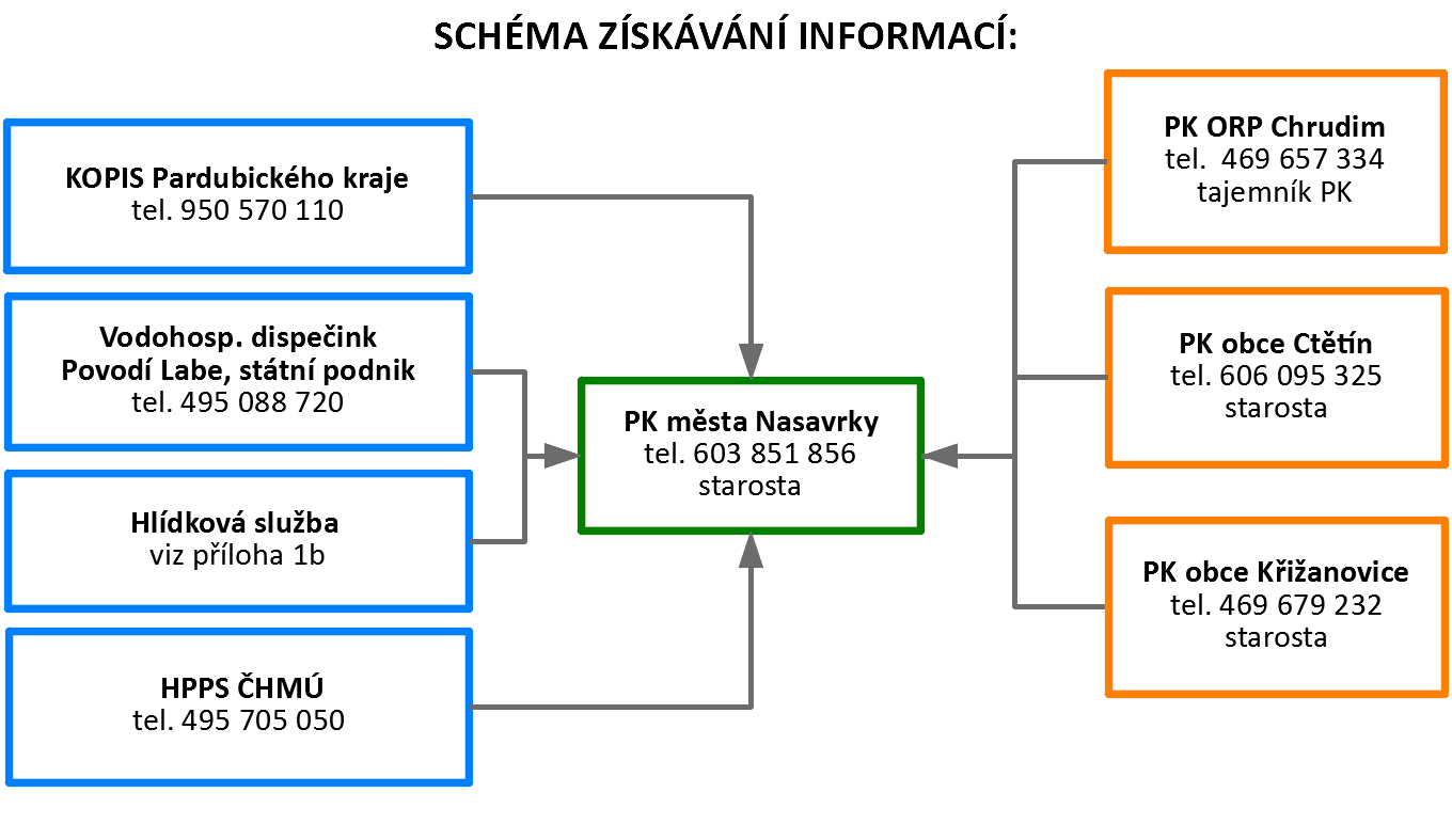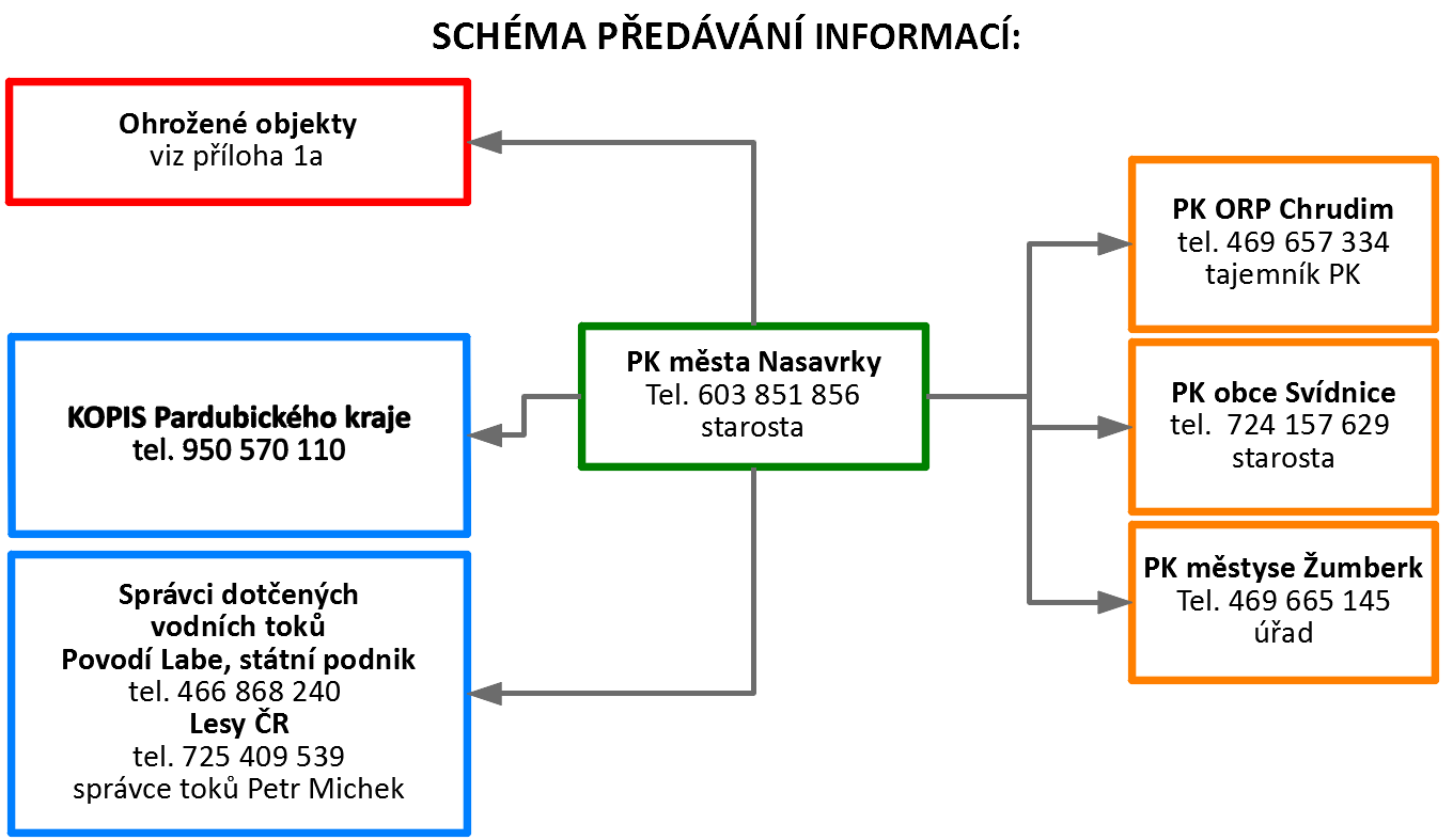 Zahájení činnosti povodňové komise města Nasavrky včetně důvodů se musí vždy zapsat (datum a čas) do povodňové knihy a vyrozumí se o tom: