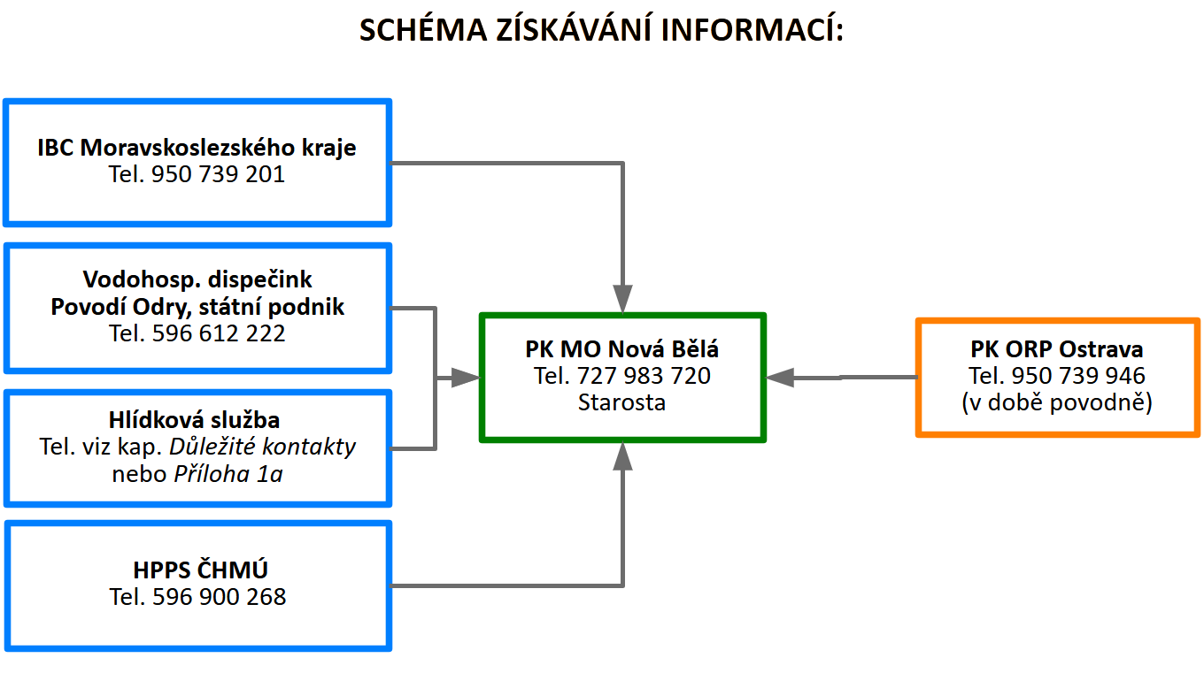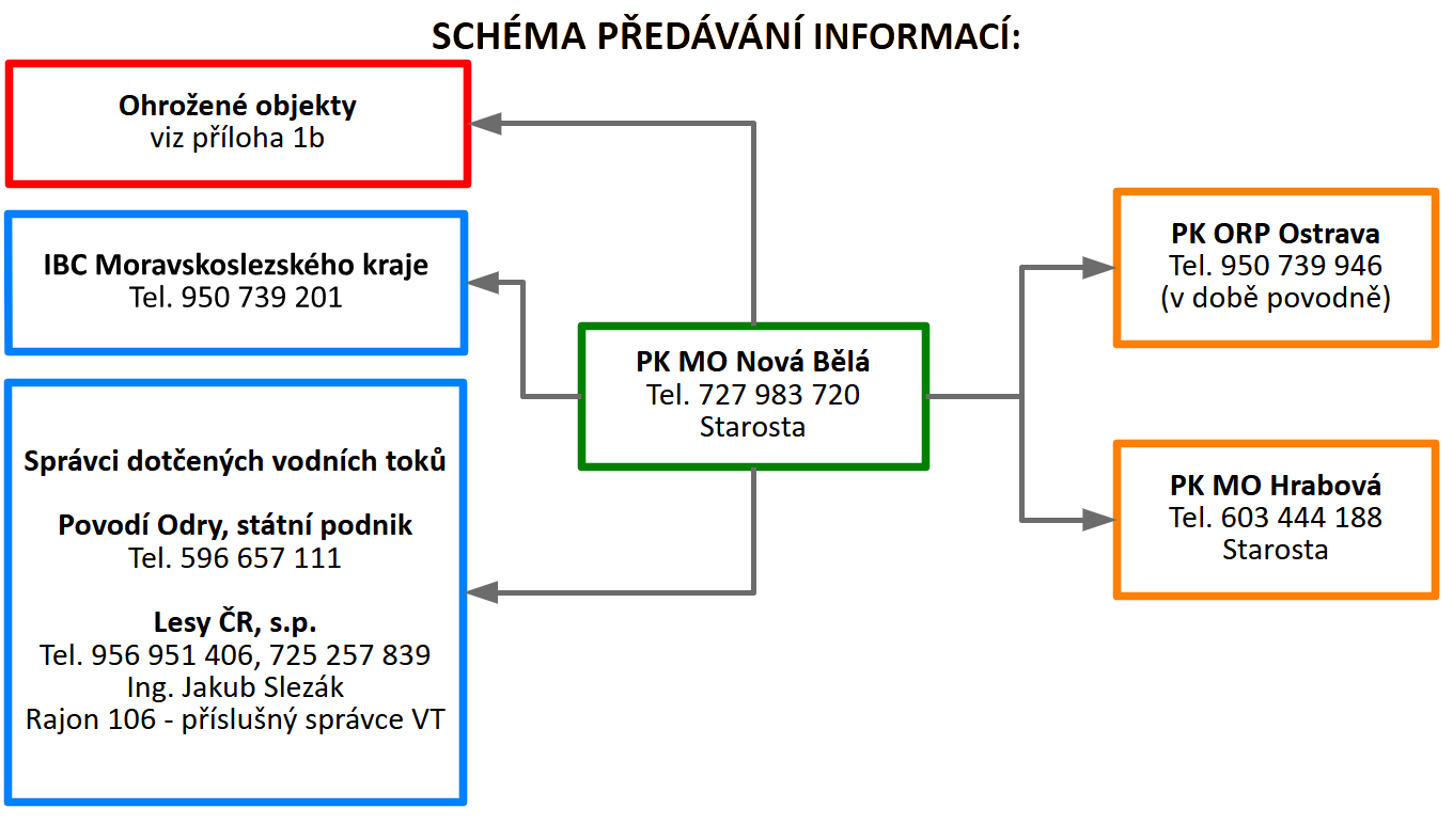 Zahájení činnosti povodňové komise městského obvodu Nová Bělá včetně důvodů se musí vždy zapsat (datum a čas) do povodňové knihy a vyrozumí se o tom: