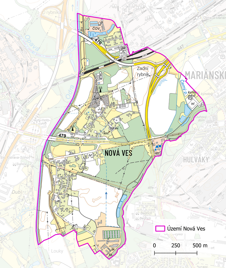 Městský obvod Nová Ves se nachází v centrální části samotného statutárního města Ostrava. Západní část katastru městského obvodu tvoří řeka Odra. Nejvyšším vrcholem katastru městského obvodu je vrchol Klínec. K 26. 3. 2021 bylo ve městském obvodu evidováno 706 obyvatel. Rozloha obvodu je 343 ha.