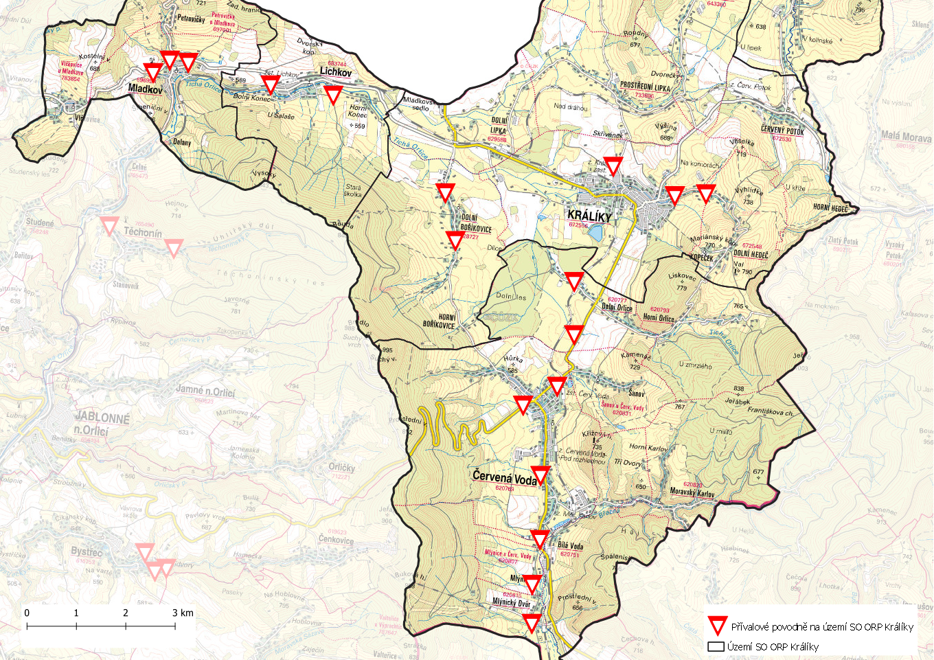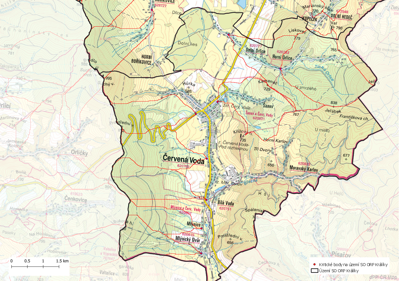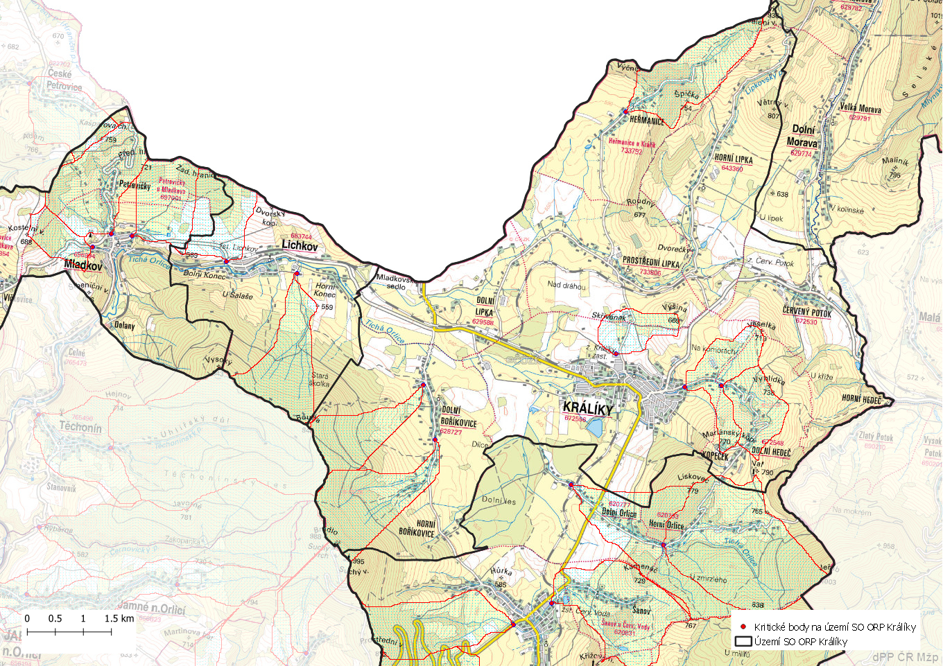 Místa ohrožená přívalovou povodní na území SO ORP Králíky