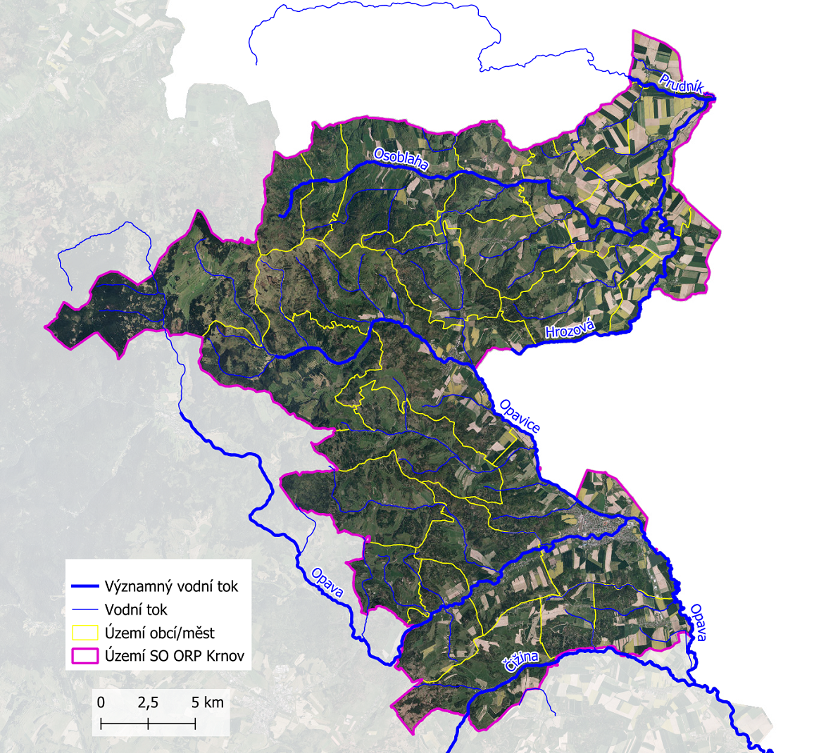 Vodní toky delší než 5 km na území SO ORP Krnov