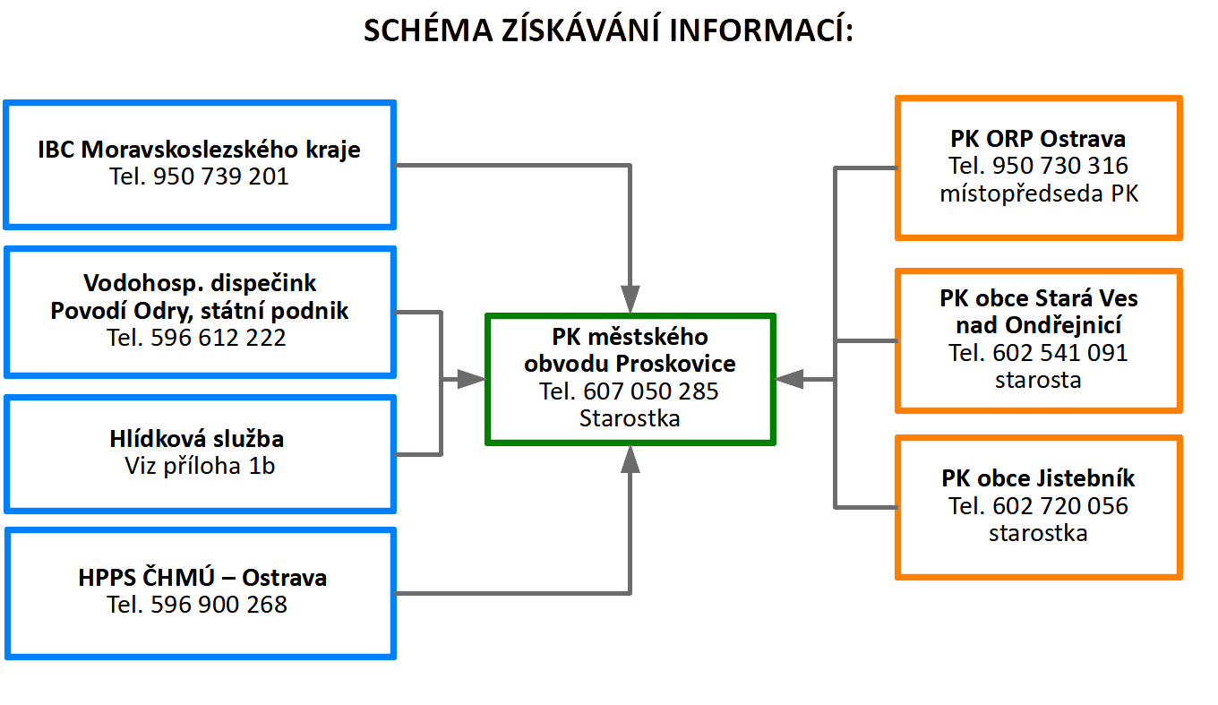 • povodňové orgány městských obvodů Stará Bělá a Polanka nad Odrou, které leží na vodních tocích pod městským obvodem