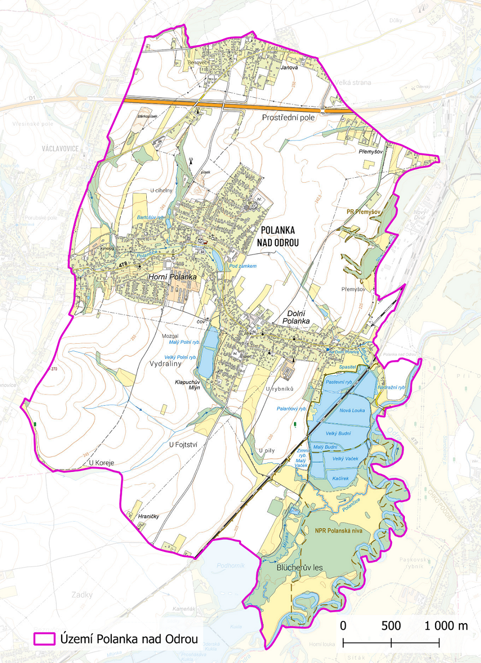 Zobrazení katastrálního území městského obvodu města Ostravy - Polanky nad Odrou