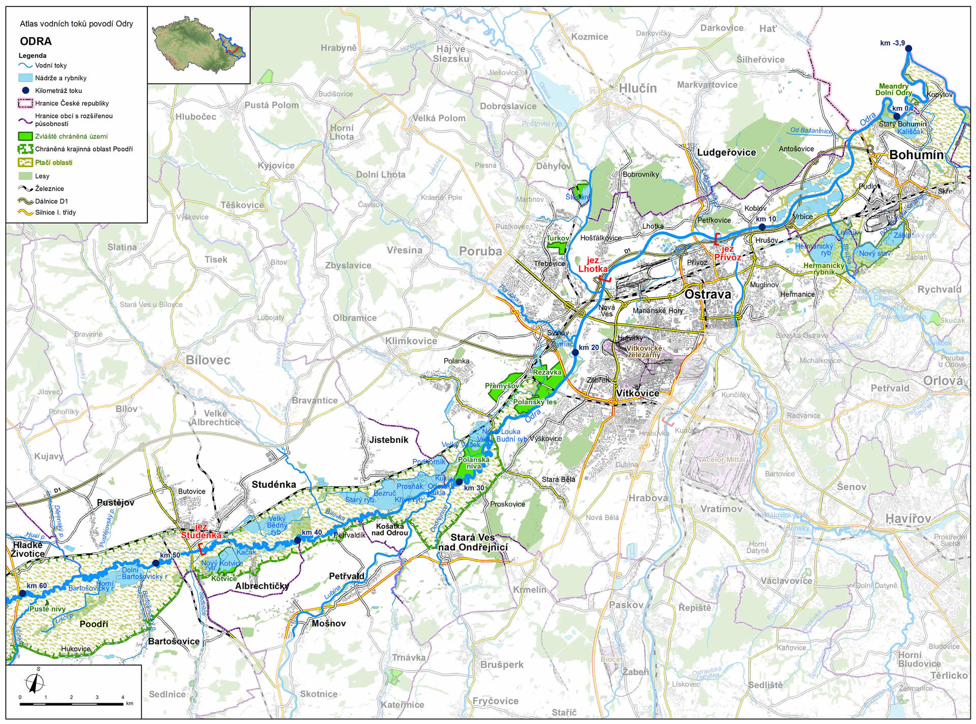 Atlas vodních toků povodí Odry - Odra v okolí Polanky nad Odrou