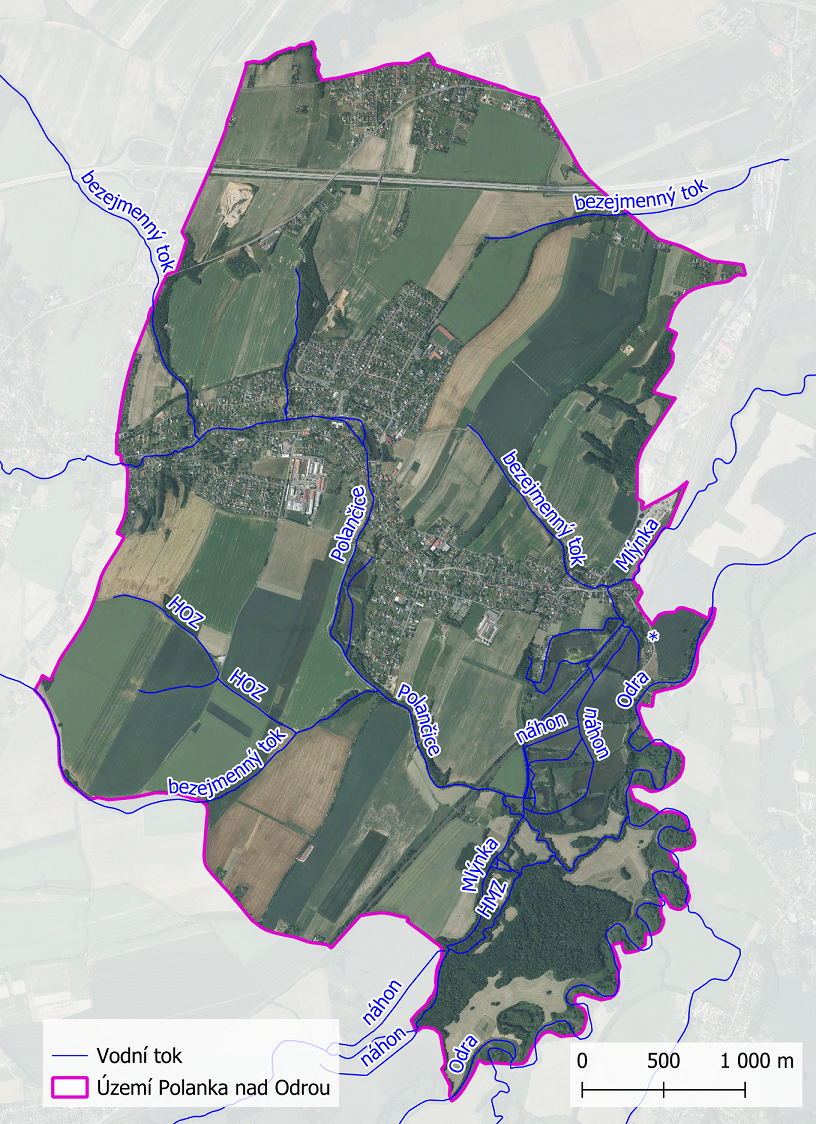 Vodní toky na území městského obvodu Polanka nad Odrou