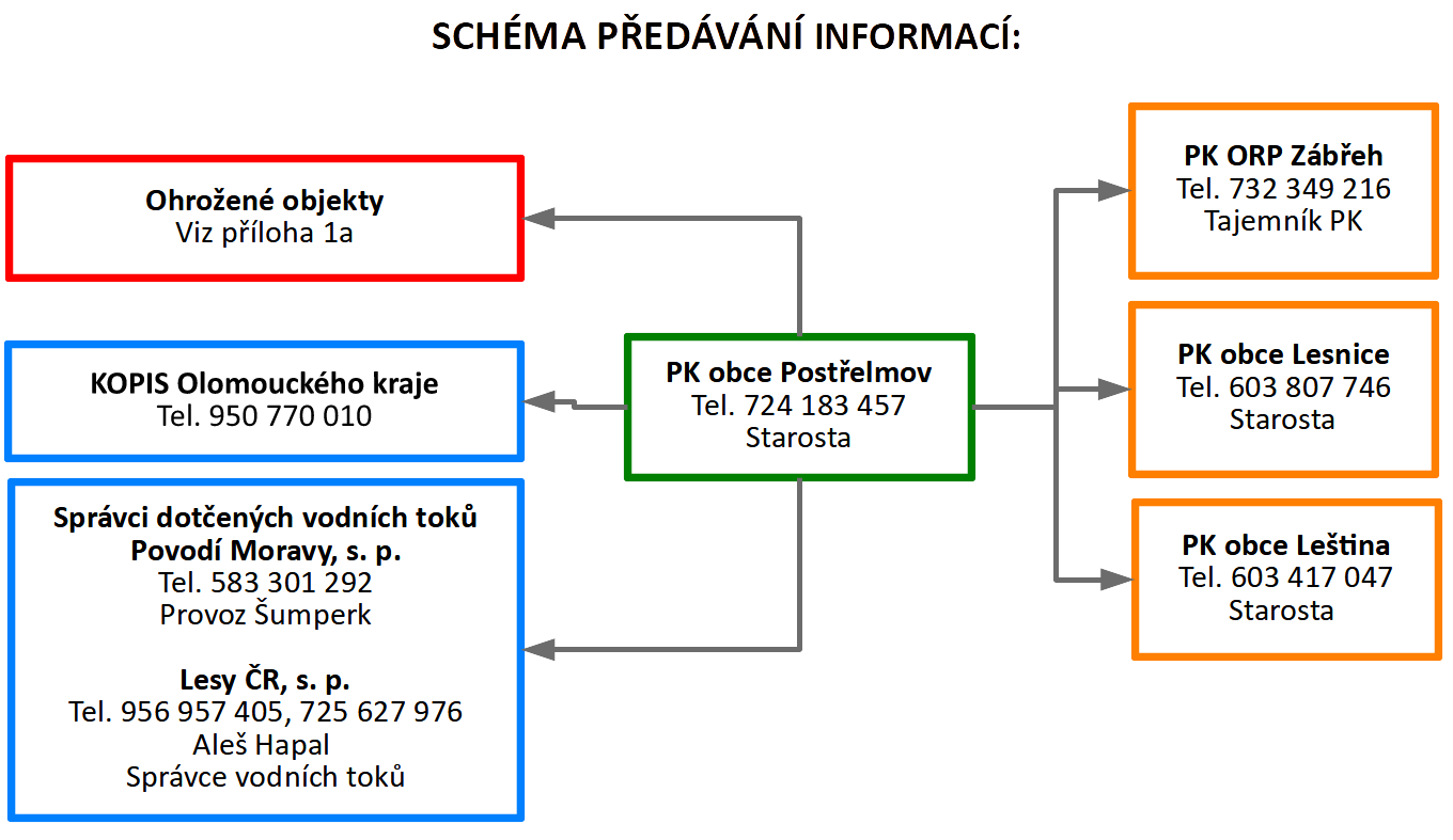 Zahájení činnosti povodňové komise obce Postřelmov včetně důvodů se musí vždy zapsat (datum a čas) do povodňové knihy a vyrozumí se o tom: