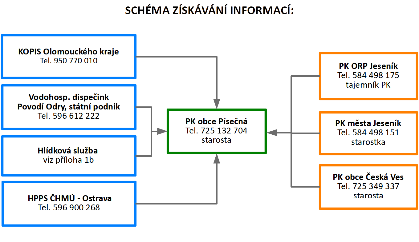 | 4 | Další vzestup hladin s nepříznivou prognózou | Svolání krizového štábu obce. | Předseda PK | KOPIS HZS Olomouckého kraje |